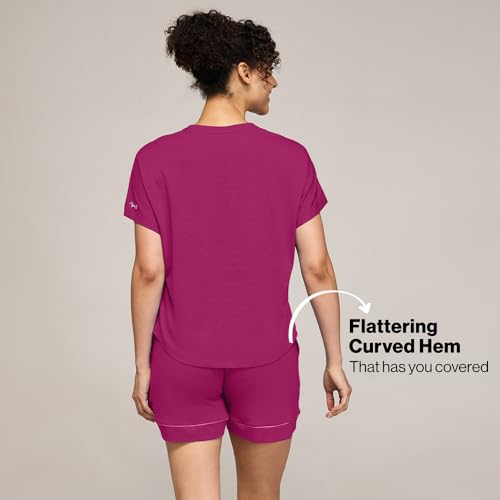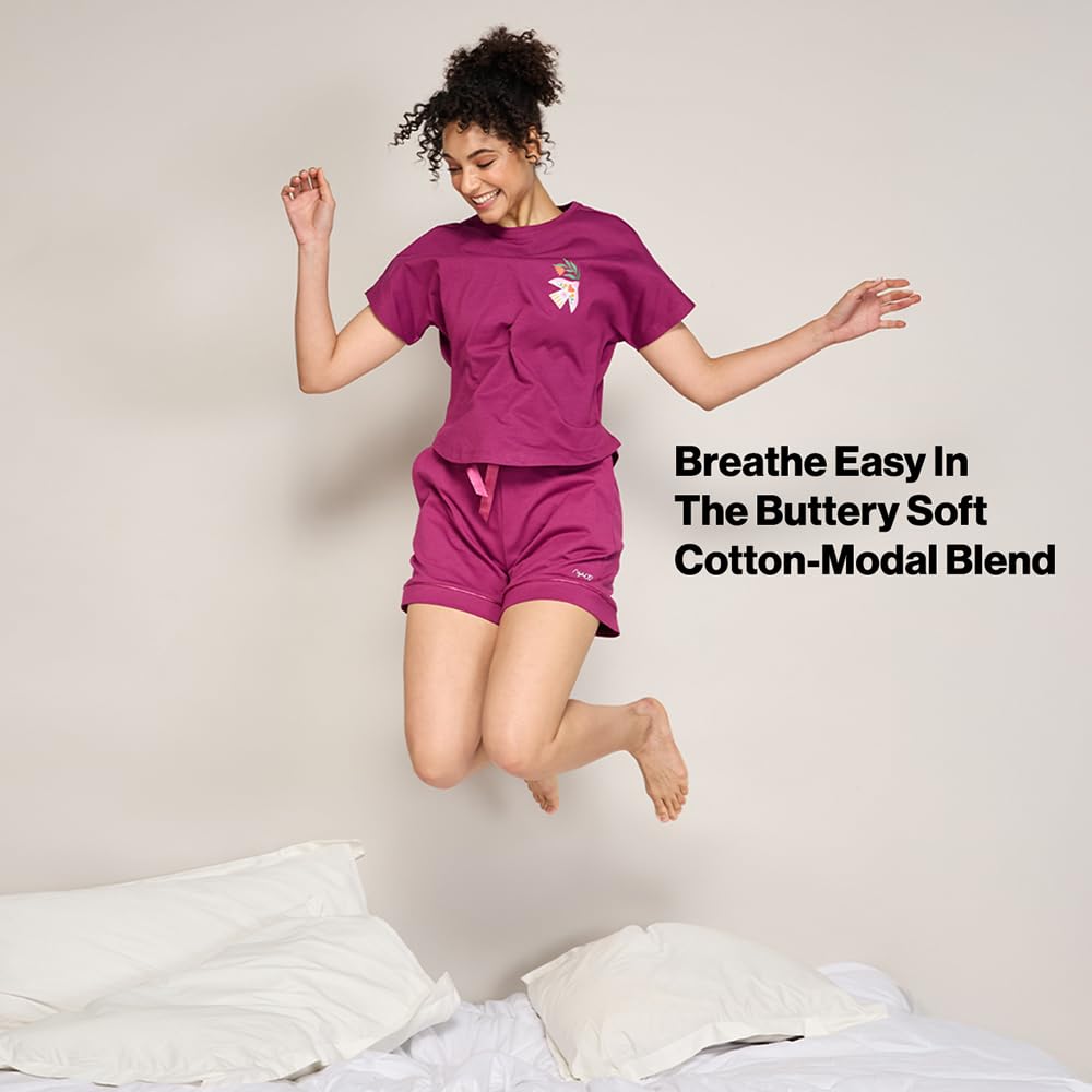 NYKD (NYS940 Soft Modal Cotton Coords Night Suit for Women | Relaxed Fit Round Neck T-Shirt with Extended Shoulder Sleeves & Shorts | Perfect for Sleep, Lounge & Everyday Wear - Wine