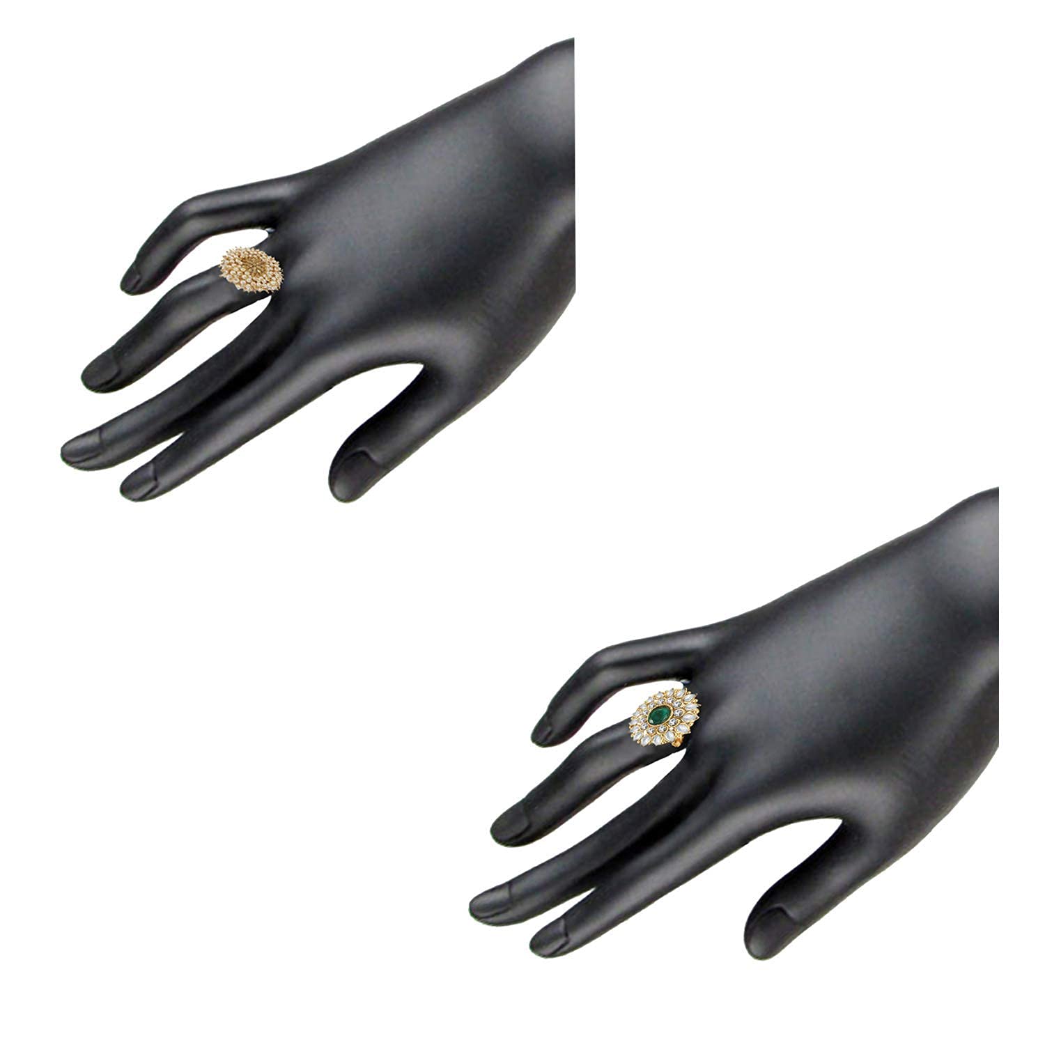 Okos Traditional Ethnic Gold Plated Alloy Adjustable Cocktail Finger Ring For Women - Combo Of 2 CO1000230C
