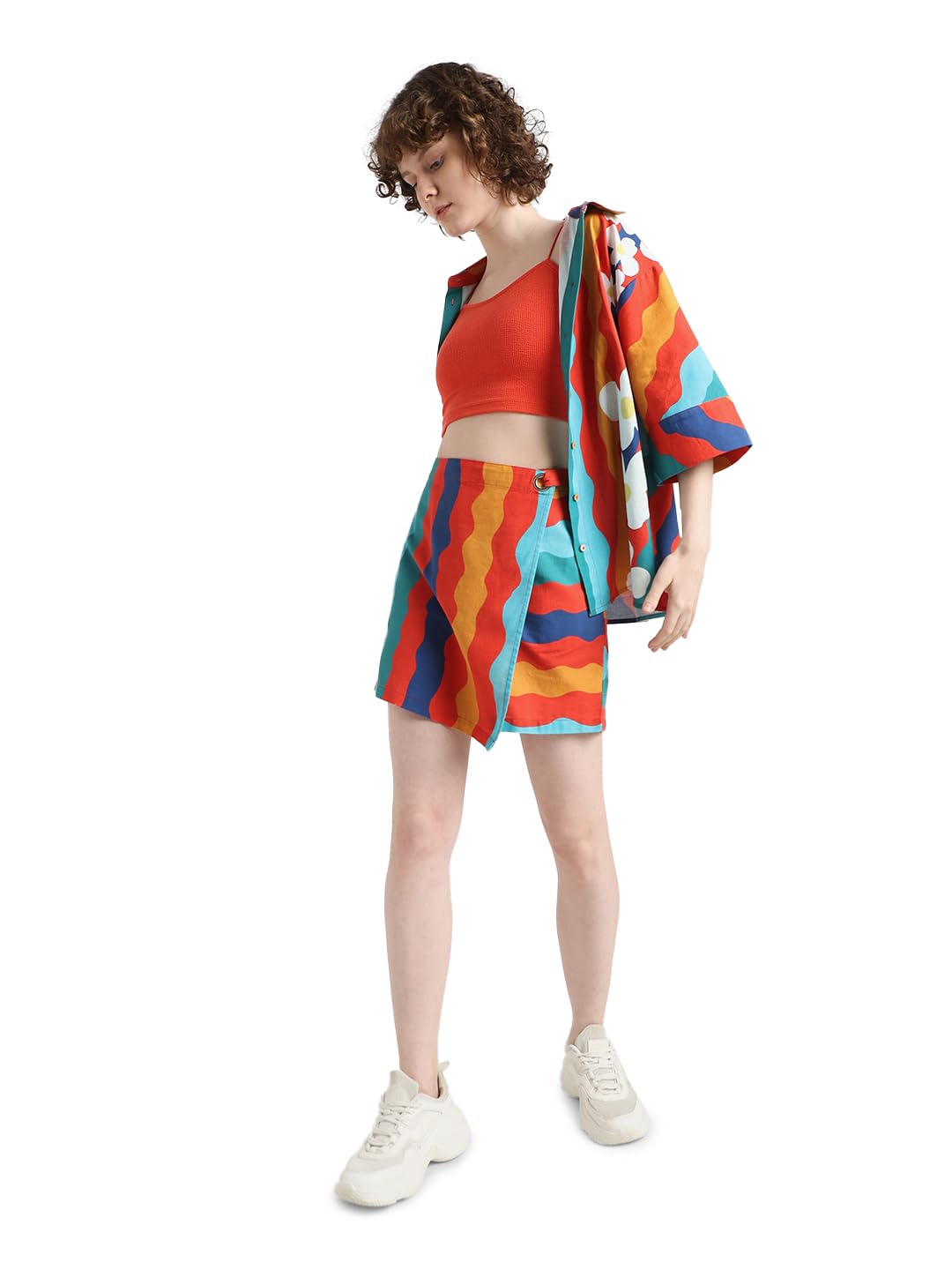 Details: Skort in cotton Printed with side pockets,. High waist with a front wrap open which covered with short underneath.