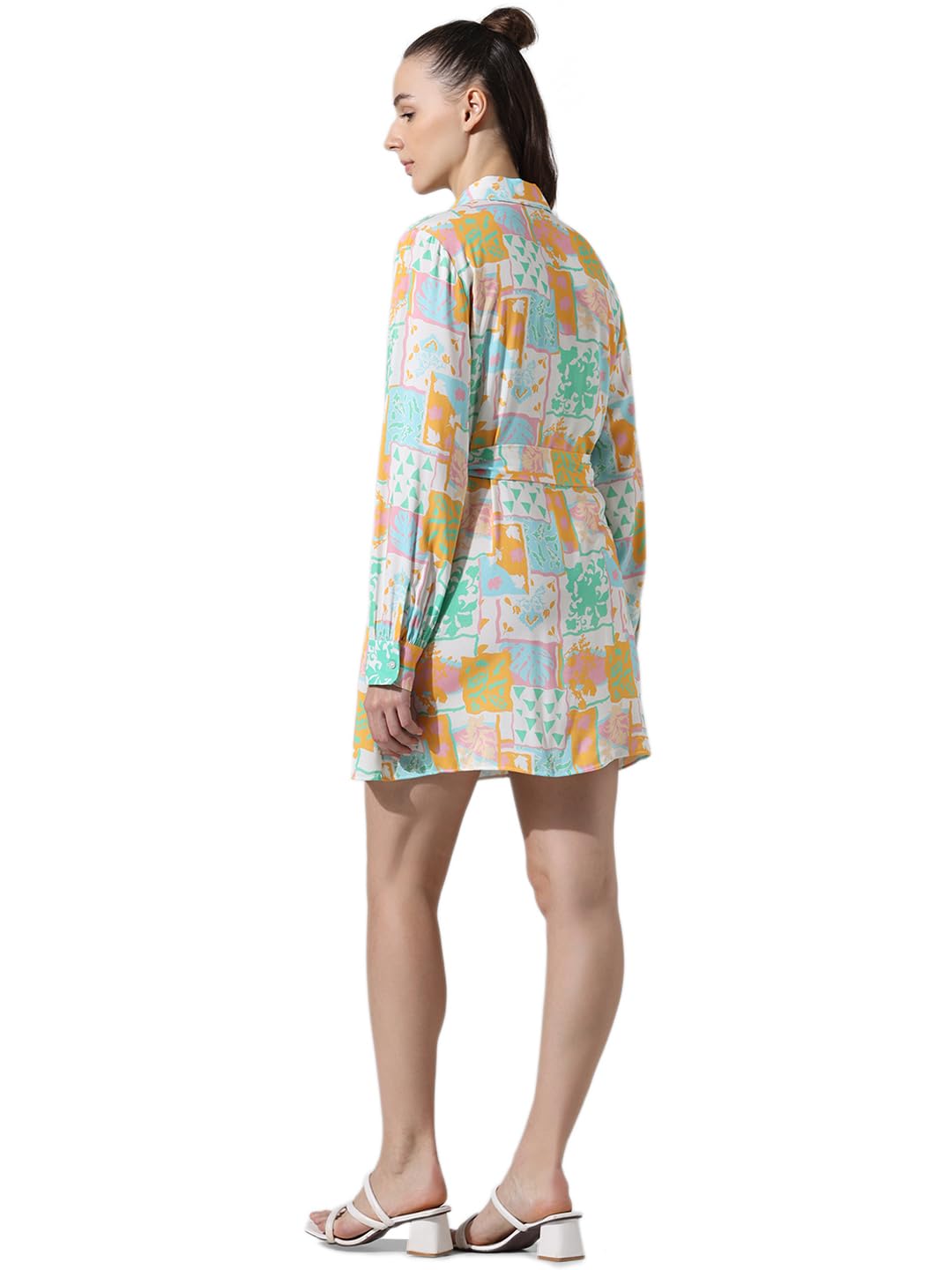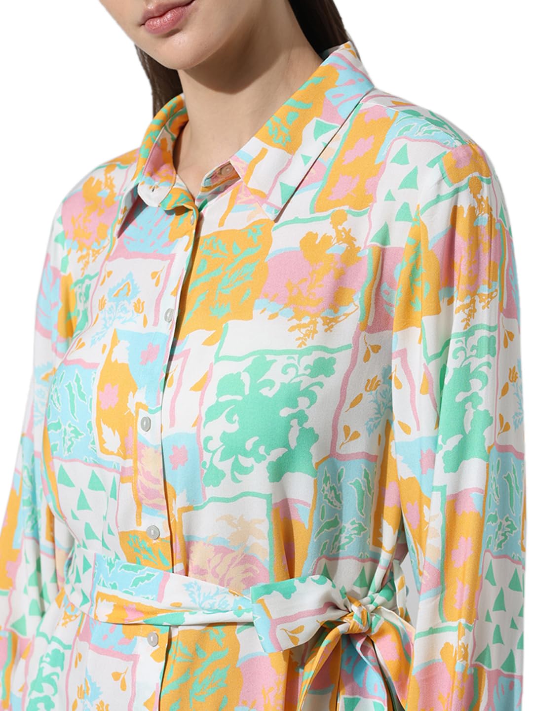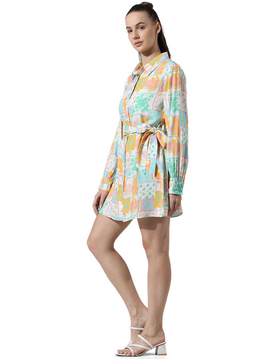 ONLY Women Printed Viscose Above Knee Loose Fit Multicolor Shirt Dress