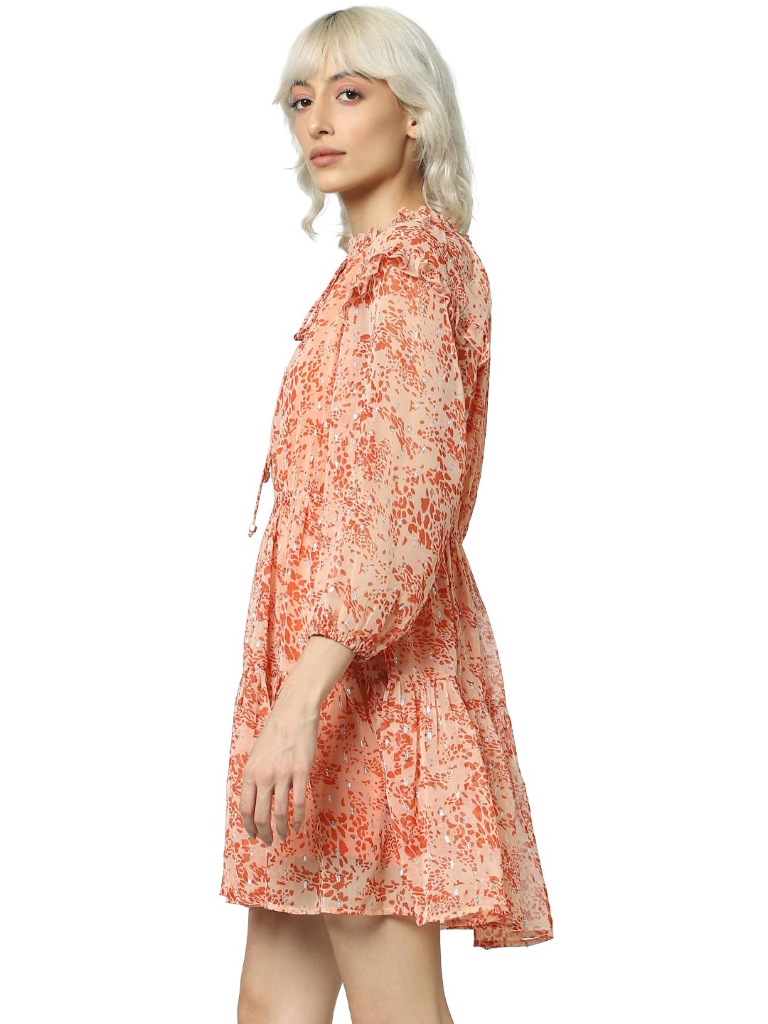 ONLY Women's Polyester Blend A-Line Above The Knee Dress (15317192-Papaya Punch_Papaya