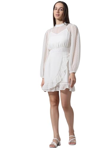 ONLY Women's Polyester Fit and Flare Above The Knee Dress (15338175- Marshmellow