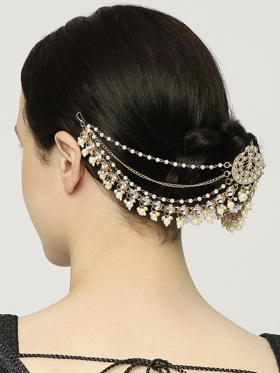 OOMPH Jewellery Gold Tone Ethnic Sheeshphool-Kundan Jadau Floral Design for Women & Girls Stylish Latest (DST4_O2)