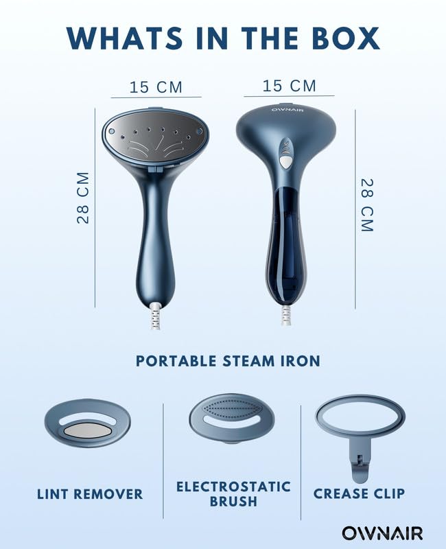 OWNAIR Handheld Garment Steamer for clothes, steam iron press, easy vertical horizontal steaming, steamer for ironing clothes, 24g/min high steam 1800 Watt, 110 ml, 15-sec Fast Heat