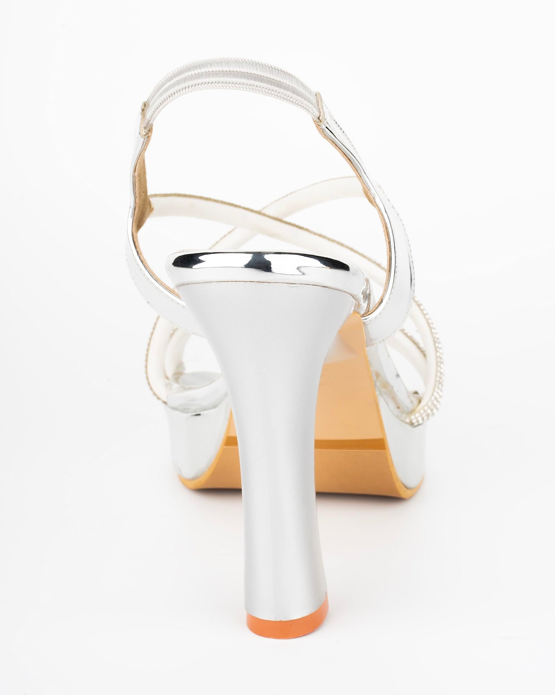 OZURI Silver Fashionable Strappy Sandals for Women | High Heel Footwear for Women (Size-8)