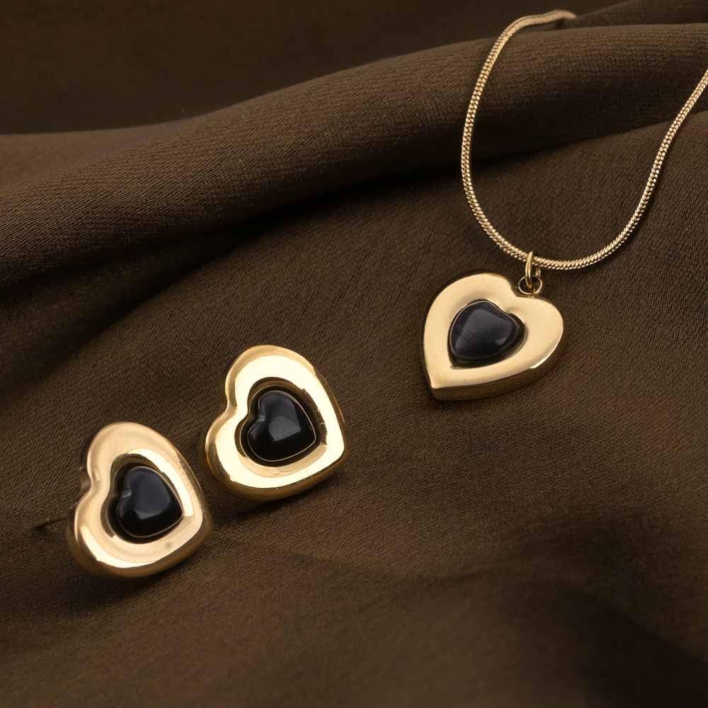 A charming jewellery set with an exquisite heart pendant and a matching pair of earrings to enhance your style.