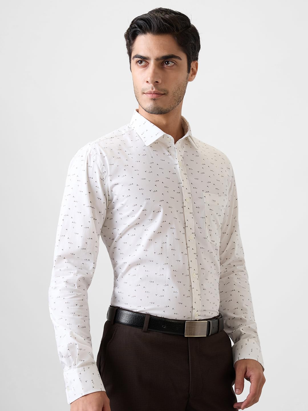 Park Avenue Men Slim Fit Print Pattern Pure Cotton Semi Cut Away Collar Full Sleeve Formal Shirt (Size: 40)-PMSX18610-W1 White
