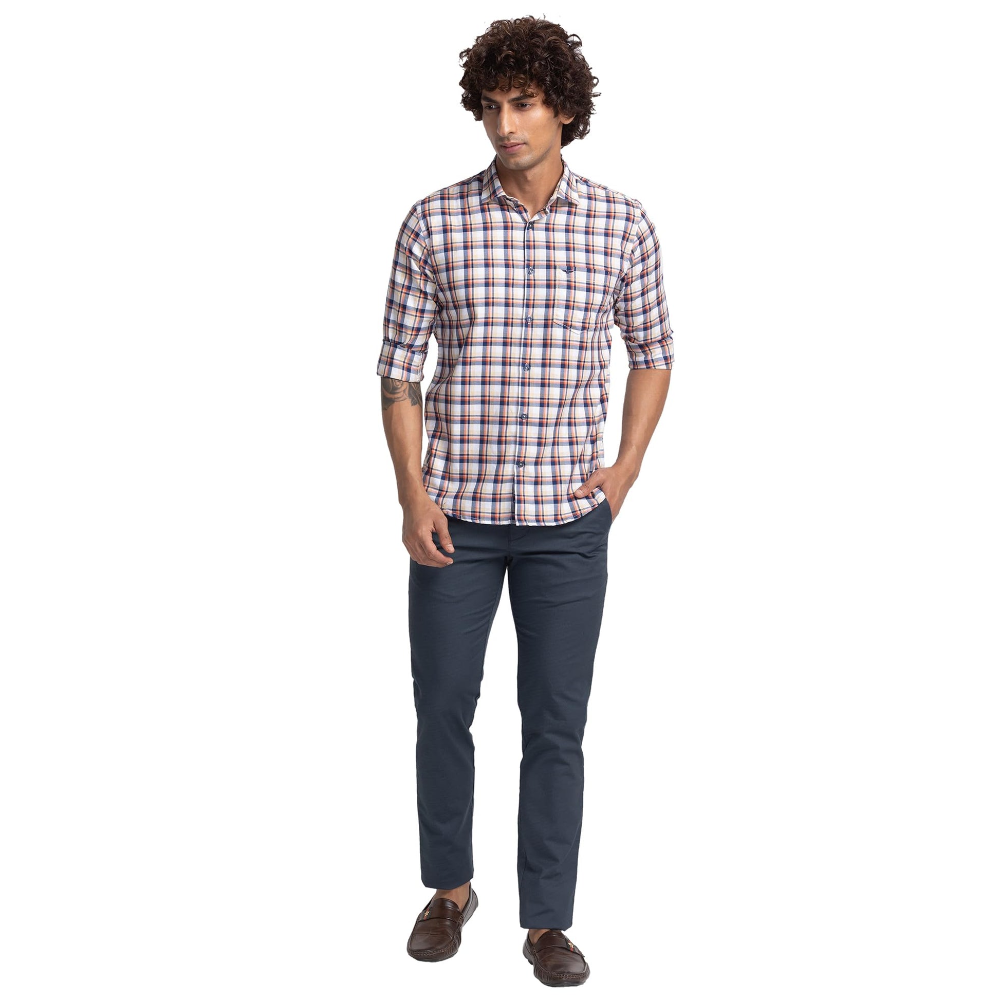 Printed Cotton Blend Slim Fit Men's Casual Trousers