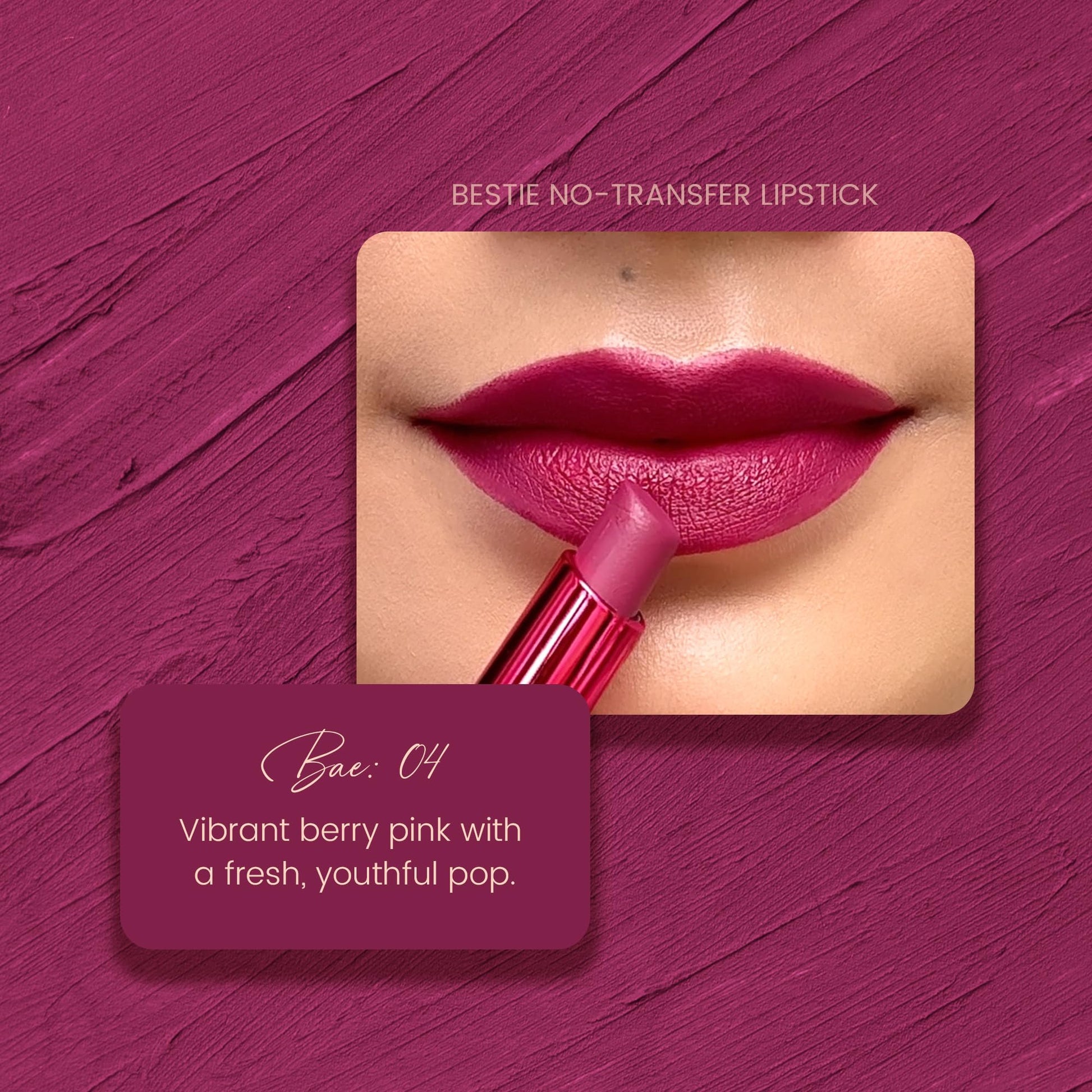 Meet your new go-to lipstick — Bestie No-Transfer Lipstick from Parul Garg Beauty. This high-performance formula delivers bold color in one smooth swipe with an ultra-lightweight, transfer-proof finish that lasts all day. Perfect for women on the move who want confident color and comfort, without the smudge.
