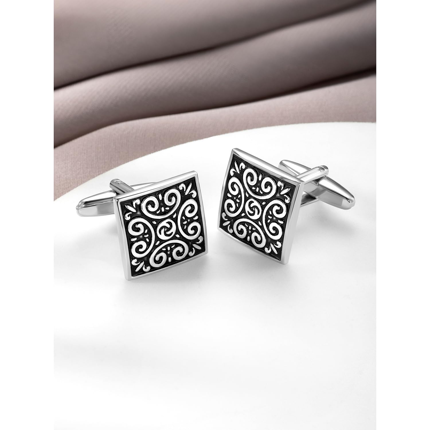 Peora Black Square Designer Cufflinks for Men Boys Wedding Business Corporate Gift