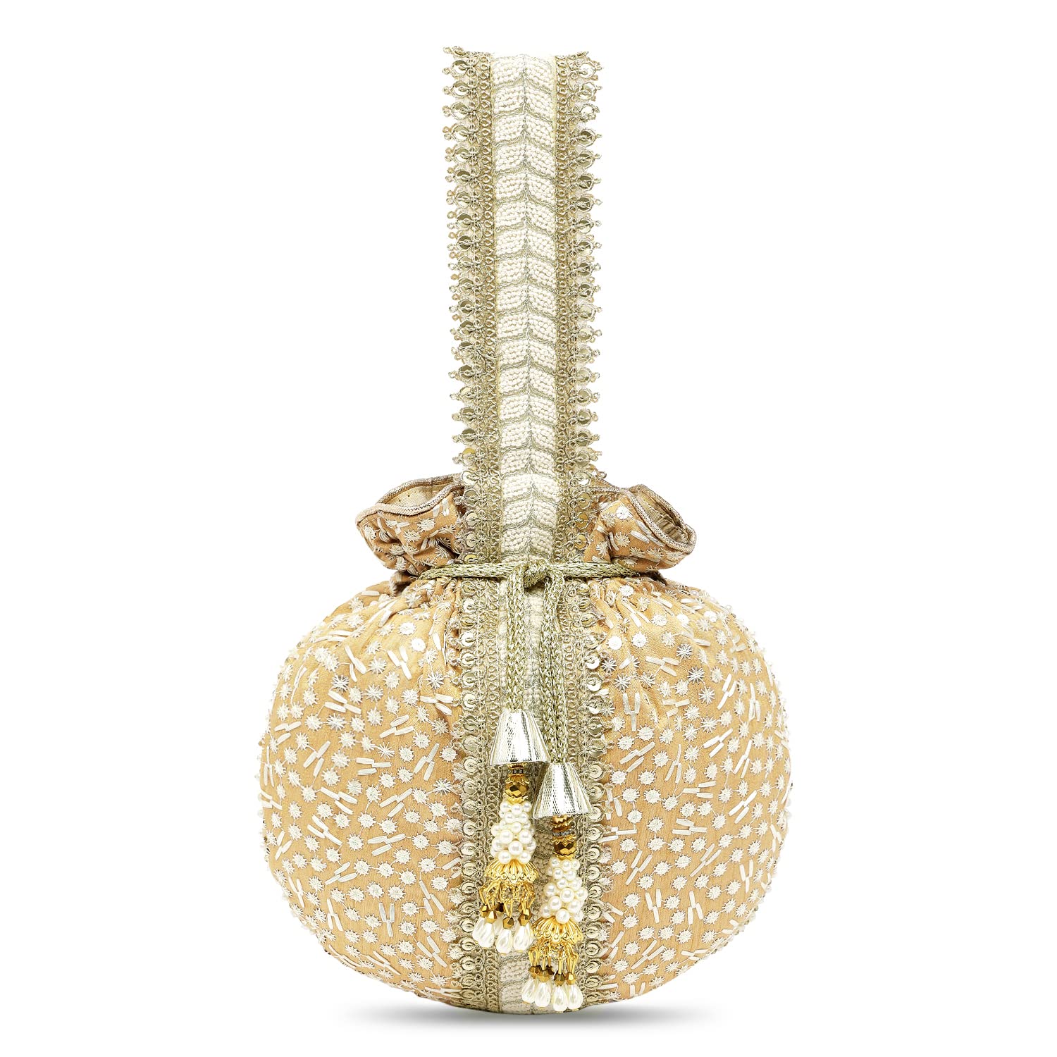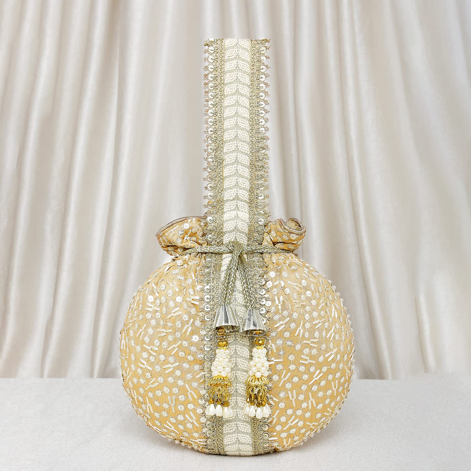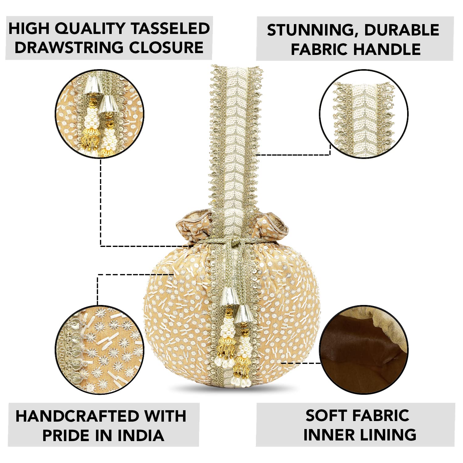 - KEY FEATURES : Potli Bag Dimension:- L - 22 cm x W - 1 cm x H - 24 cm, Weight- 111 Grams || Peora Brown Potli Bags for Women Evening Bag Clutch Ethnic Bride Purse with Drawstring(P93BR)