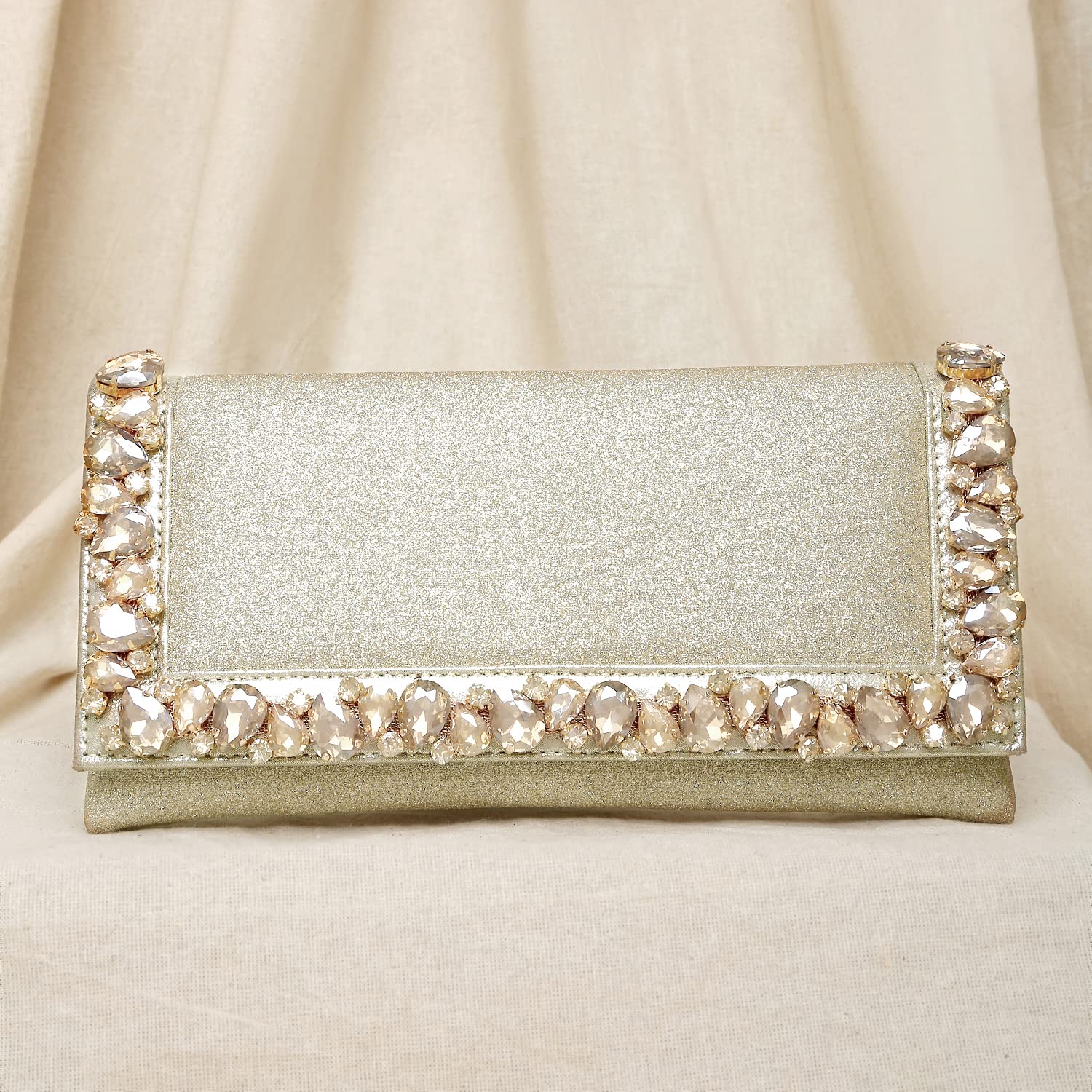 - KEY FEATURES : Wedding Clutch Dimension:- L - 9.64 Inch x W - 0.39 Inch x H - 4.92 Inch, Weight- 232 Grams | Type:- Envelope | Color:- Gold | Size:- Regular | Material:- Fabric