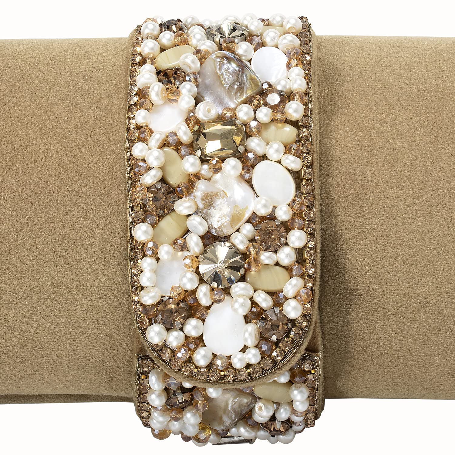 - Design: Embellished with Indian hand work, the soft fabric interior of the evening bag has enough room to keep your credit card, cash, and other small essentials like mobile phones, lipstick, highlighter, keys.