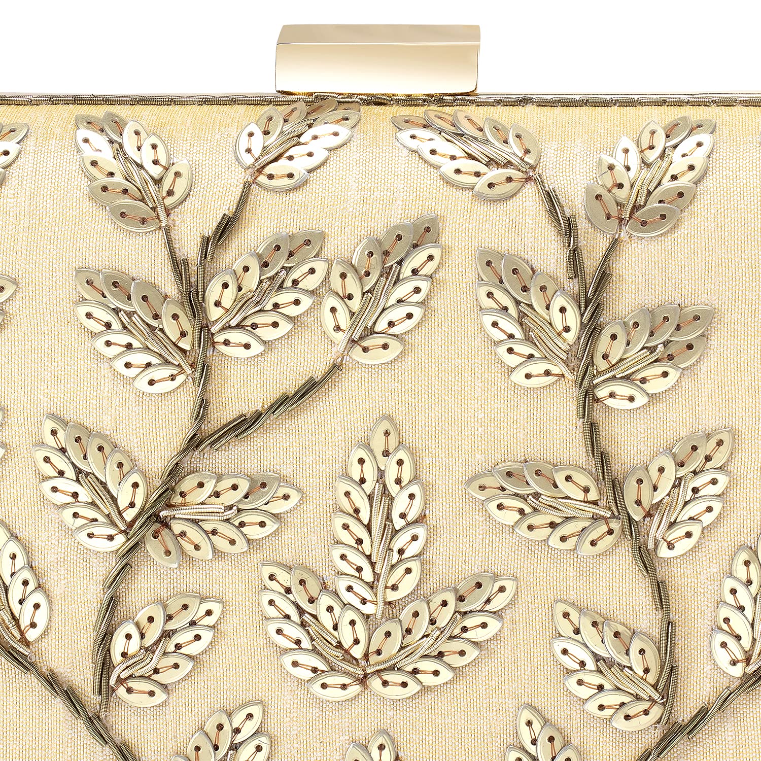 - KEY FEATURES : Wedding Clutch Dimension:- L - 7 x W - 3.5 x H - 1.2 Inches, Weight- 0.31 KG | Type:- Box | Color:- Gold | Size:- Regular | Material:- Fabric