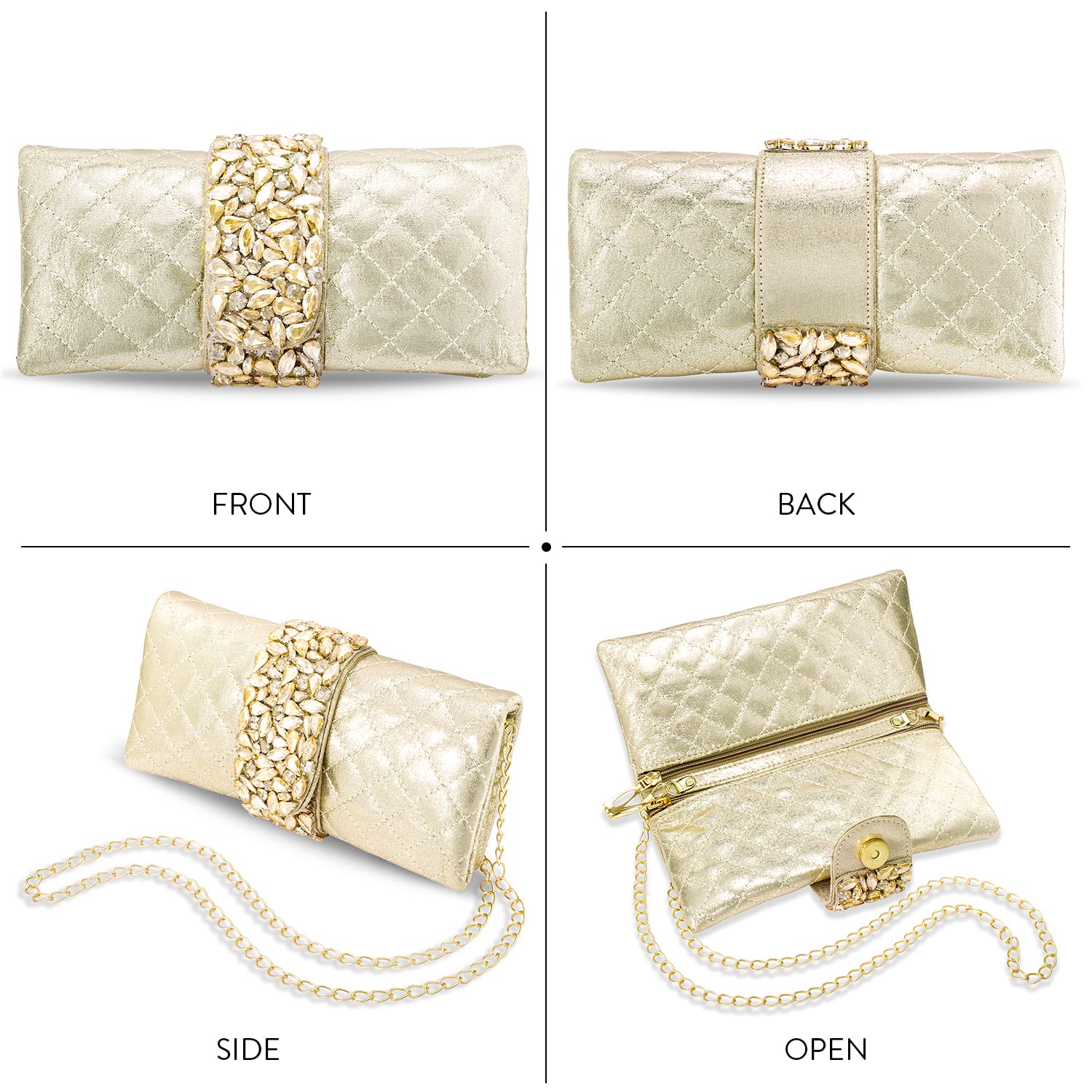- GIFT: Absolutely stunning and elegant, this bride clutch makes for a perfect gift for a fashionista for Weddings, Christmas, Birthday, Wedding Anniversary, Valentine’s Day, Diwali, and Mother’s Day.