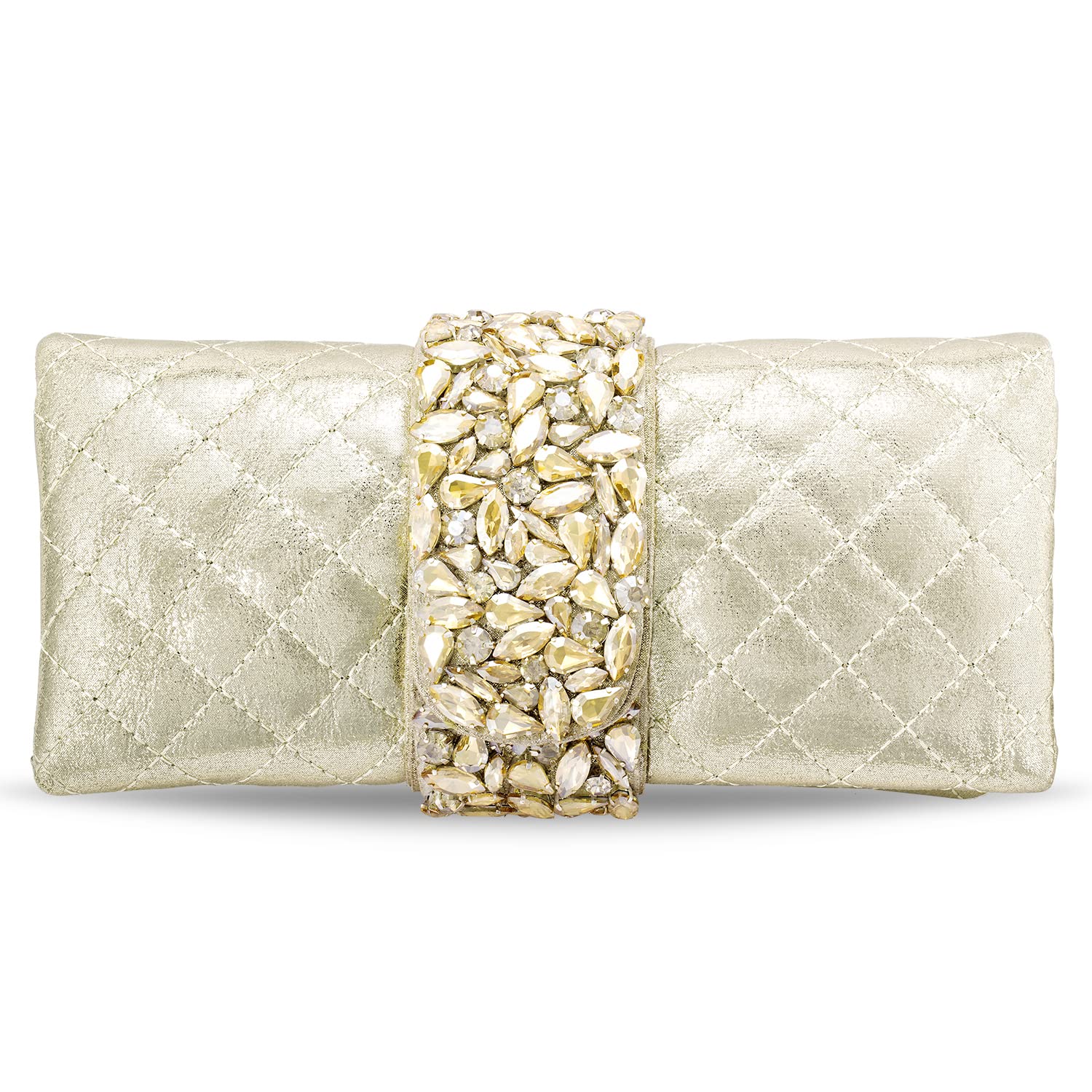 - KEY FEATURES : Wedding Clutch Dimension:- L - 8.7 Inch x W - 1.18 Inch x H - 4.13 Inch, Weight- 292 Grams | Type:- Envelope | Color:- Gold | Size:- Regular | Material:- Fabric