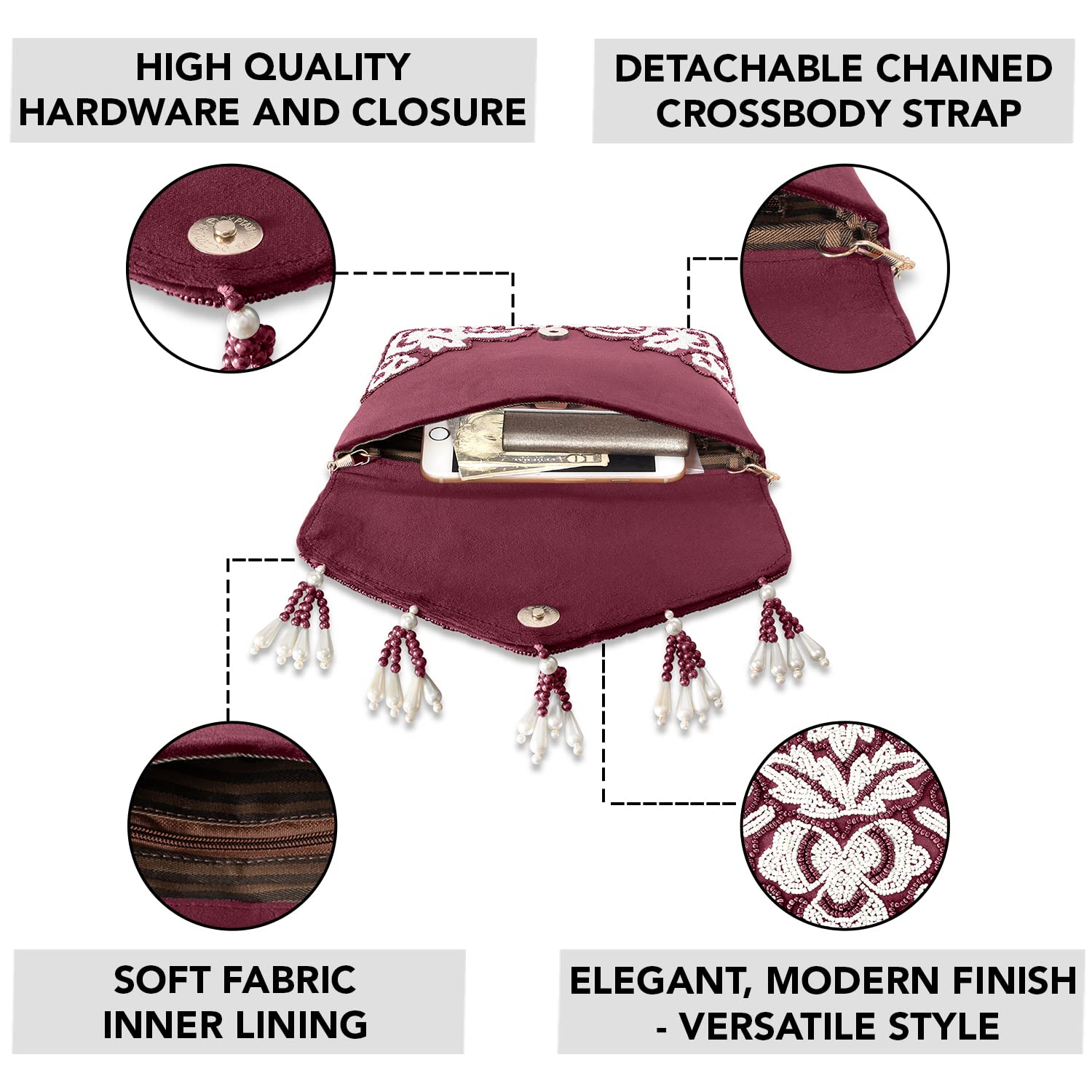 Peora Clutch Purses for Women Wedding Handmade Evening Handbags Party Bridal Clutch (Maroon)