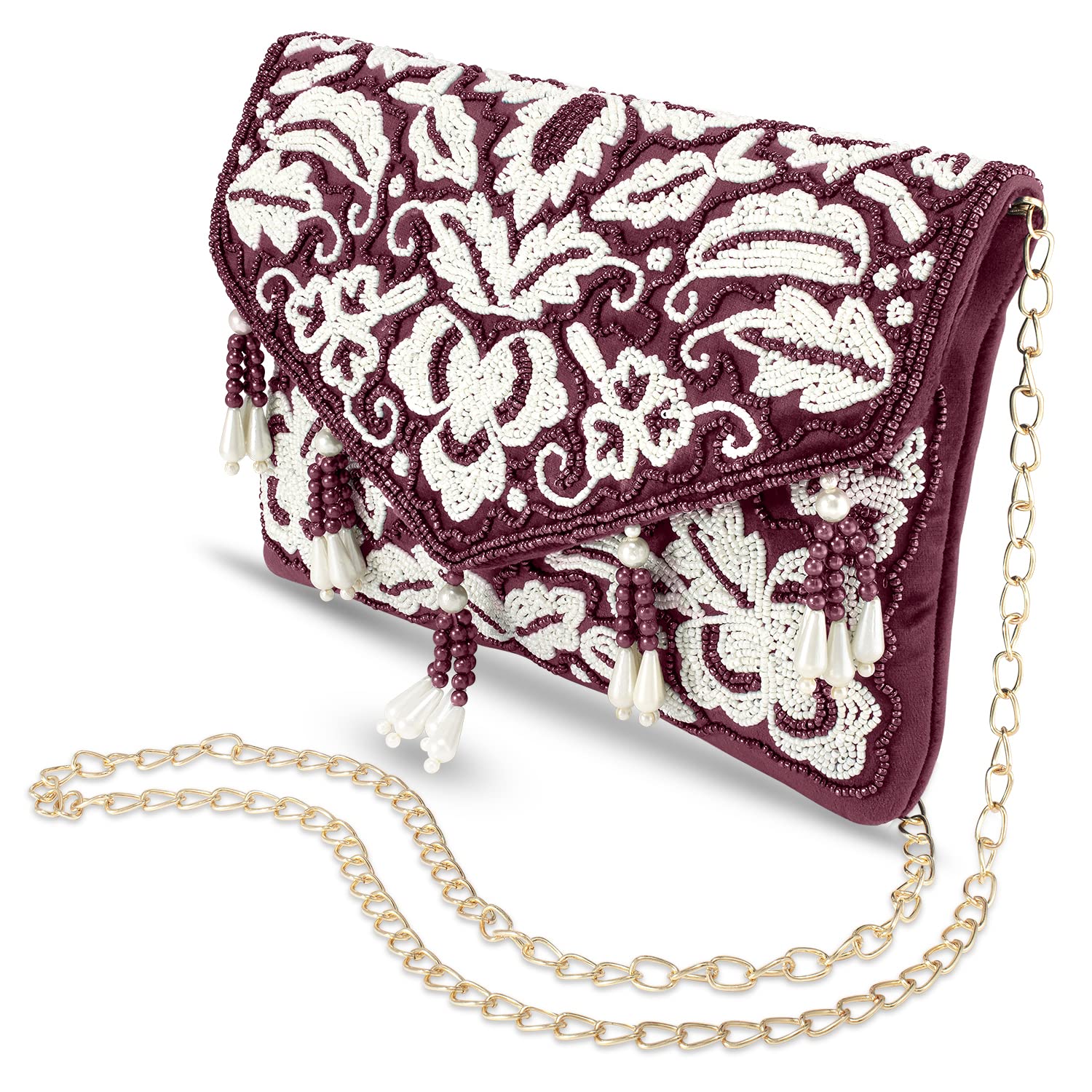 - DESIGN: Embellished with Indian hand work, the soft fabric interior of the evening bag has enough room to keep your credit card, cash, and other small essentials like mobile phones, lipstick, highlighter, keys.