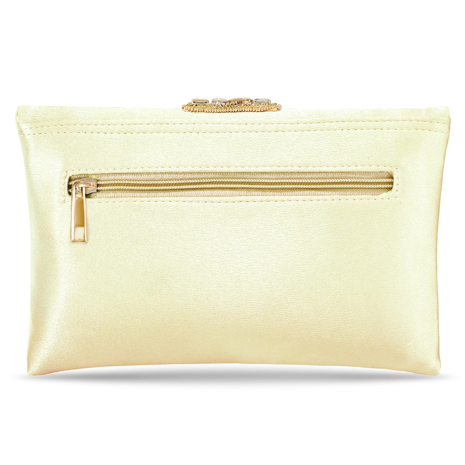Peora Clutch Women's Purse Bridal Bag For Casual Detachable Strap Evening Sling Bag (Golden)
