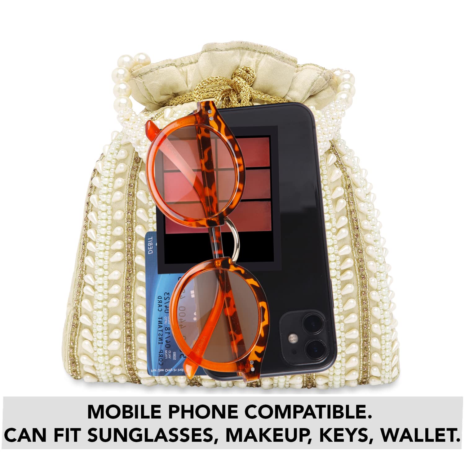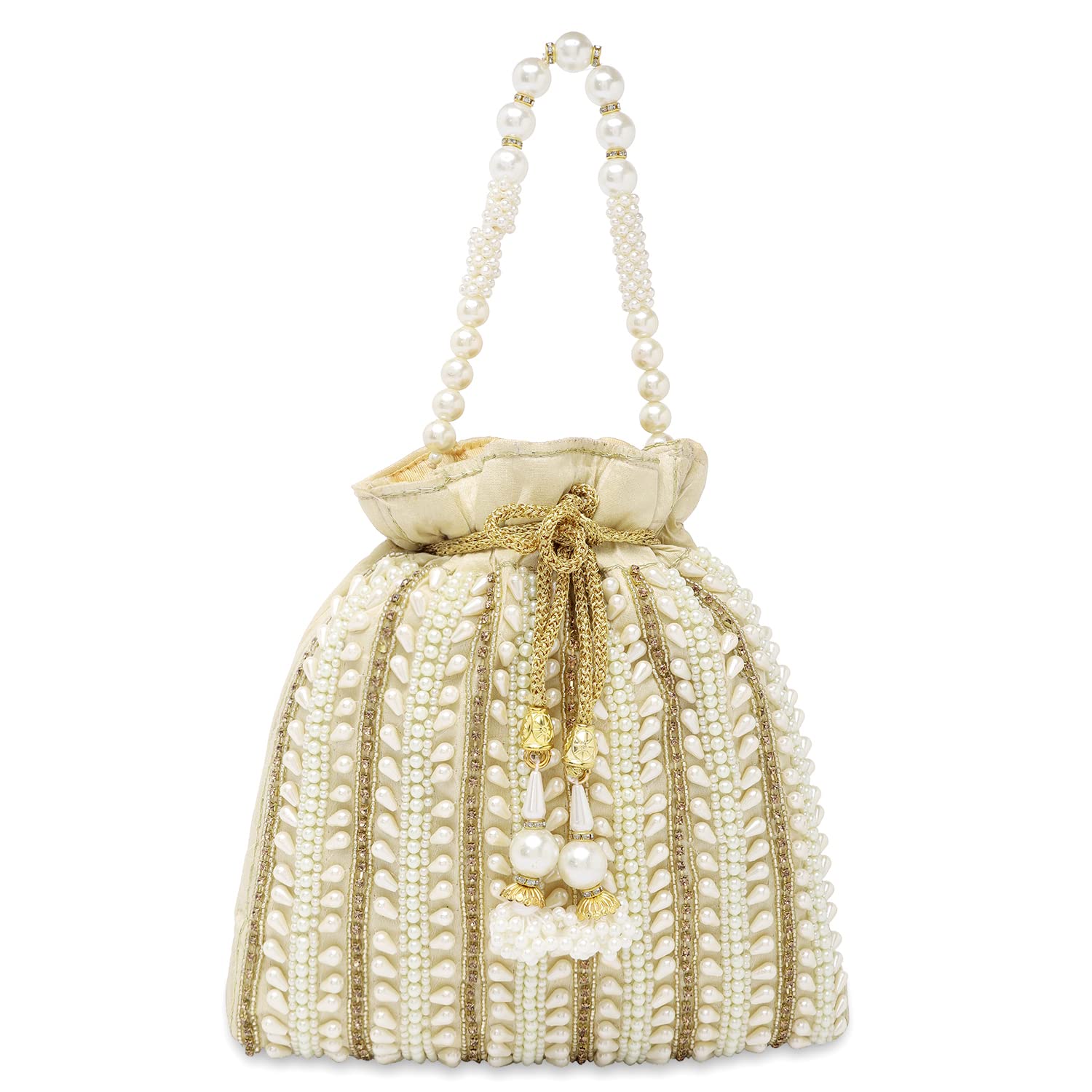 - KEY FEATURES : Potli Bag Dimension:- L - 22 cm x W - 1 cm x H - 23 cm, Weight- 163 Grams || Peora Cream Gold Potli Bags for Women Evening Bag Clutch Ethnic Bride Purse with Drawstring