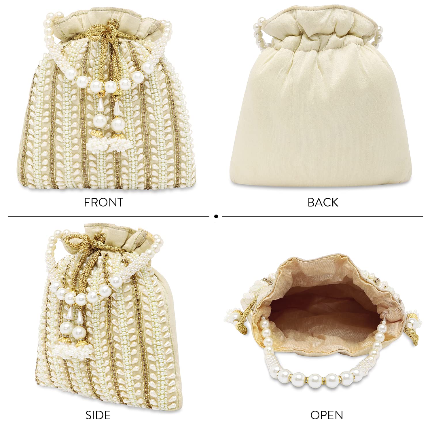 Peora Cream Potli Bags for Women Girls Evening Bag Clutch Ethnic Bride Purse with Drawstring