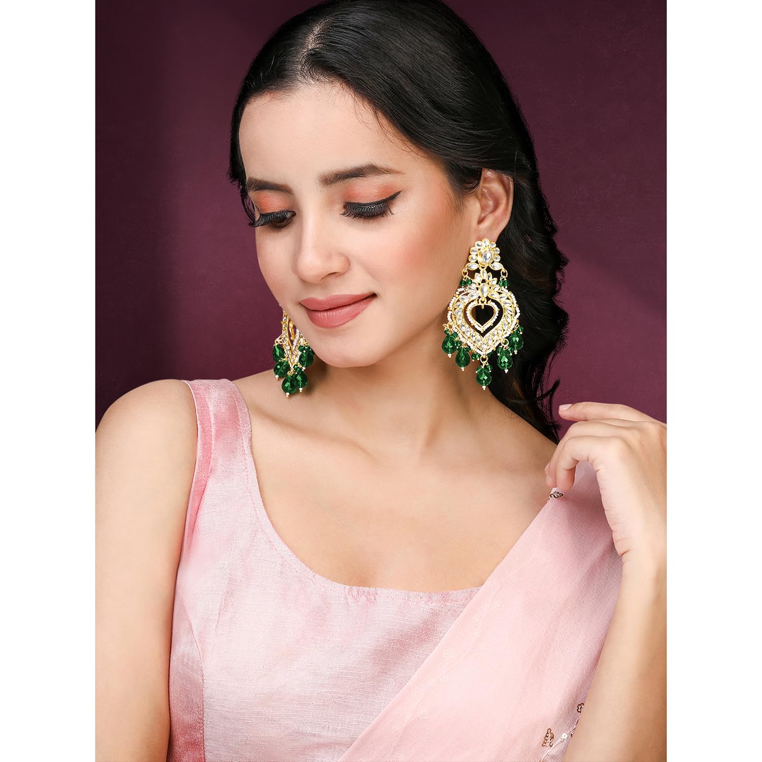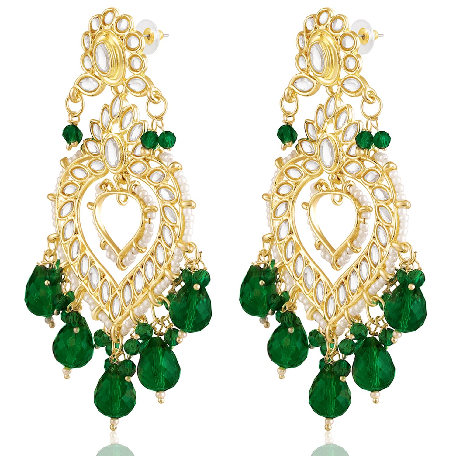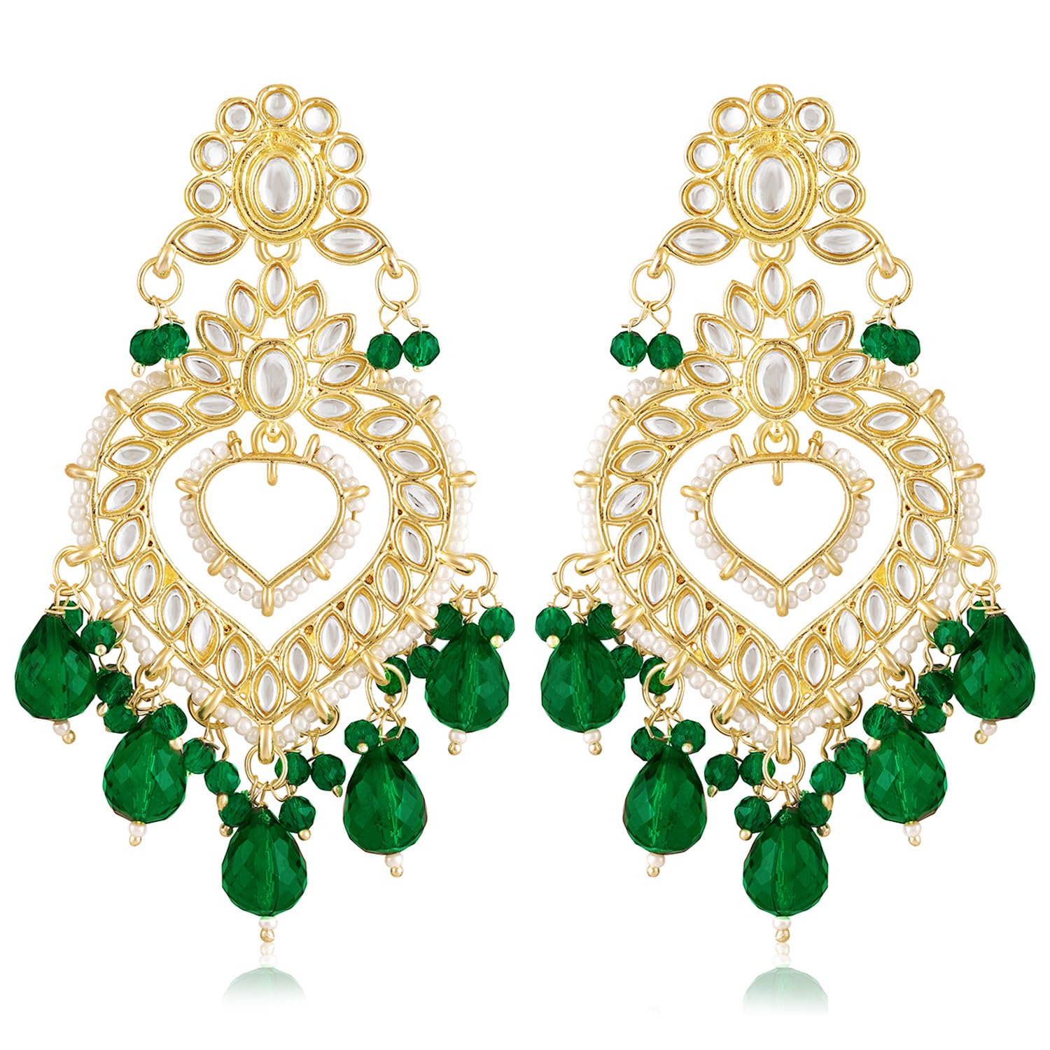 Peora Gold Plated Green Kundan & Beads Studded Dangle Earrings Ethnic Jewellery for Women & Girls