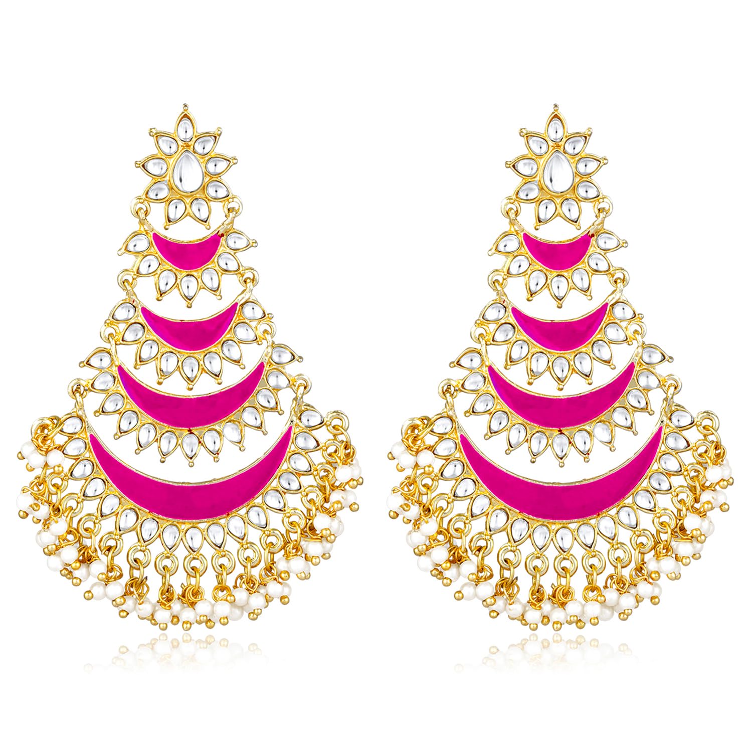Peora Gold Plated Rani Pink Kundan & Lariya Studded Dangle Earrings Ethnic Jewellery for Women