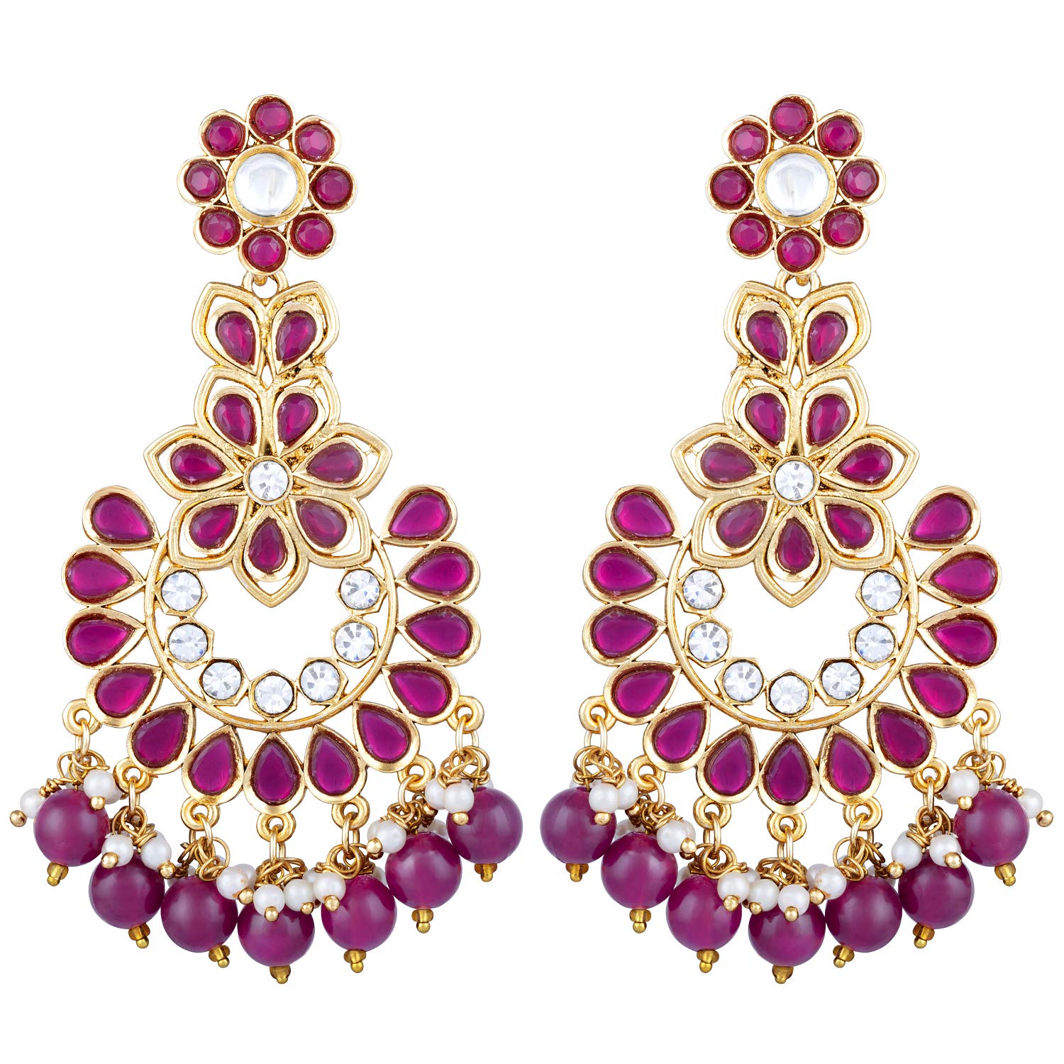 Peora Gold Plated Rani Pink Studded Chandbali Dangle Earrings for Women