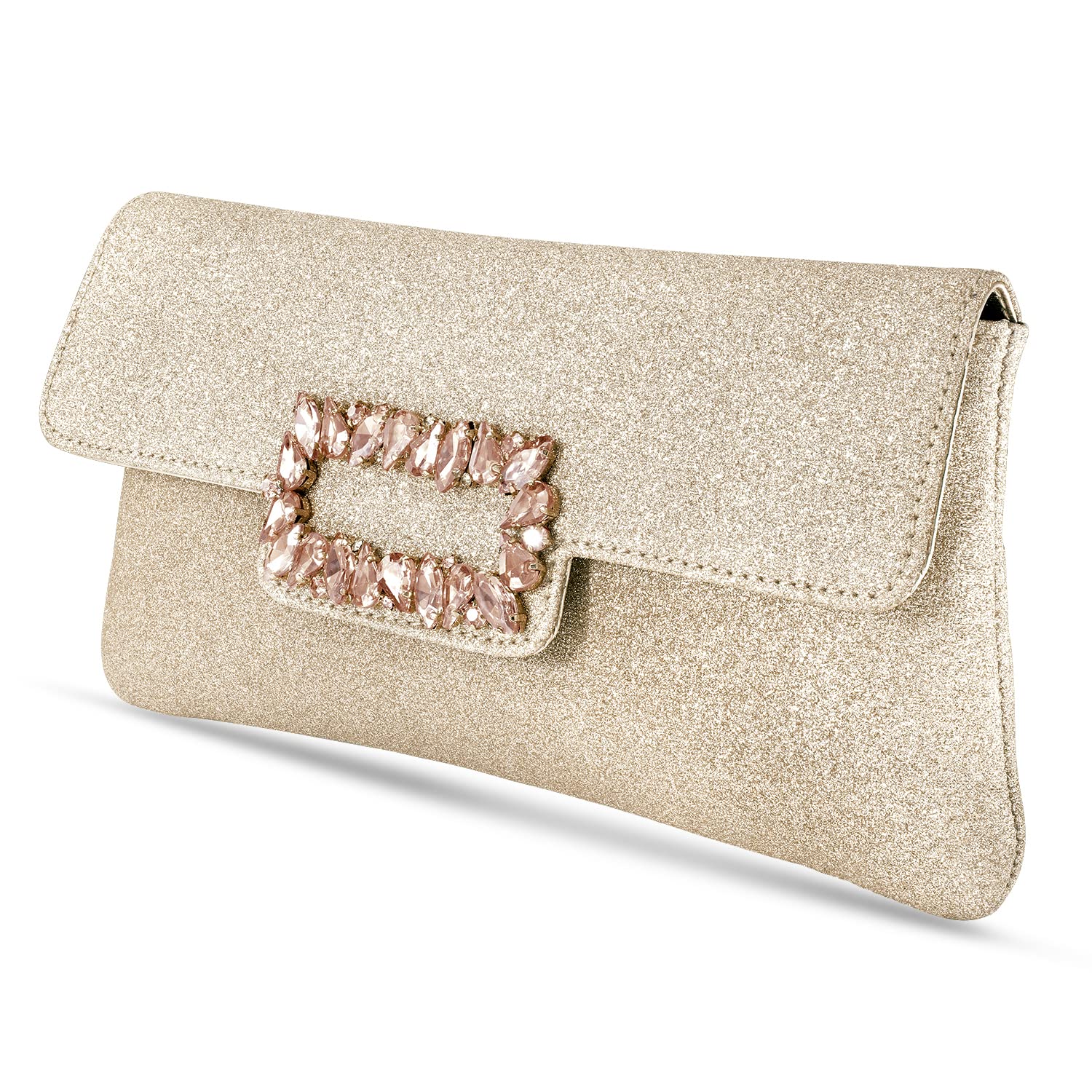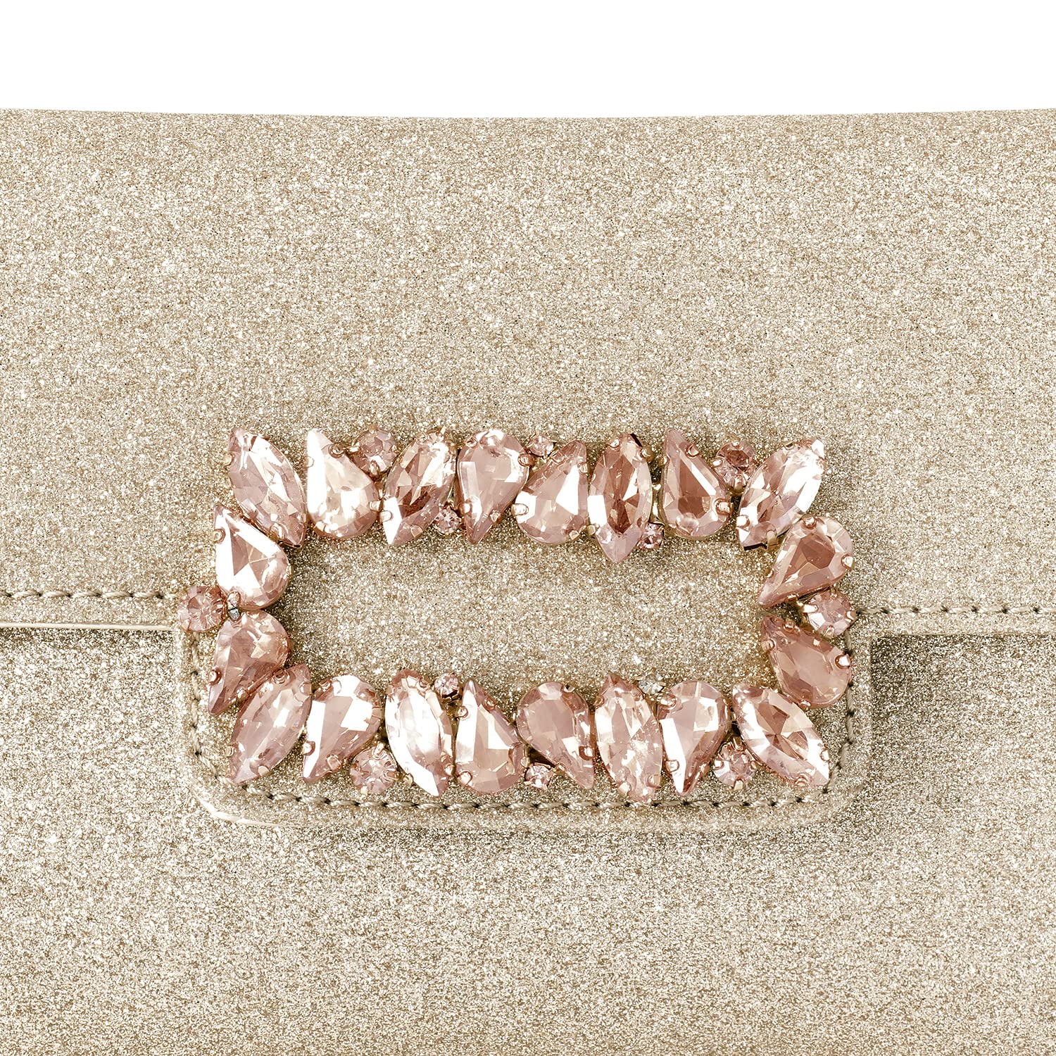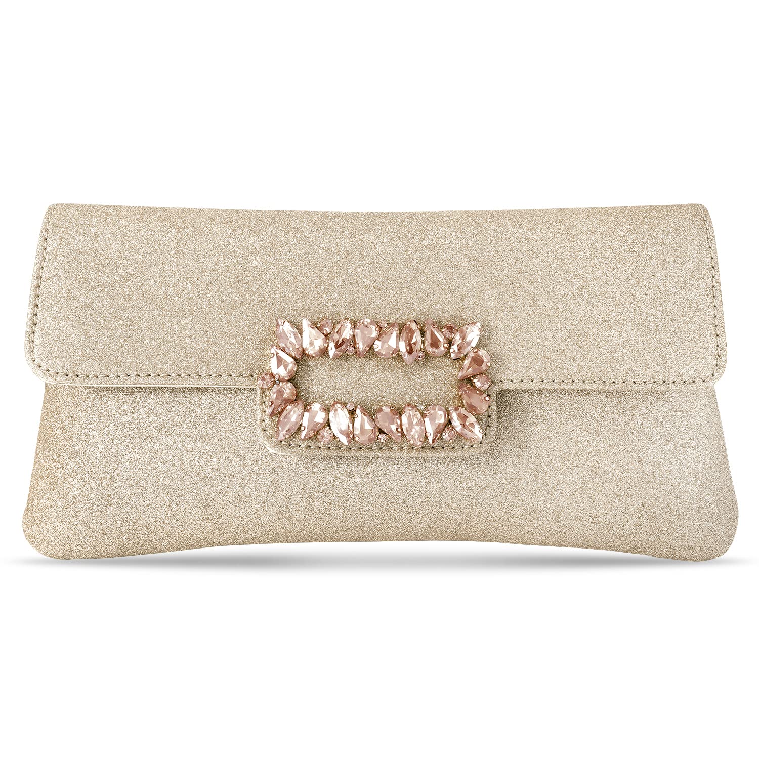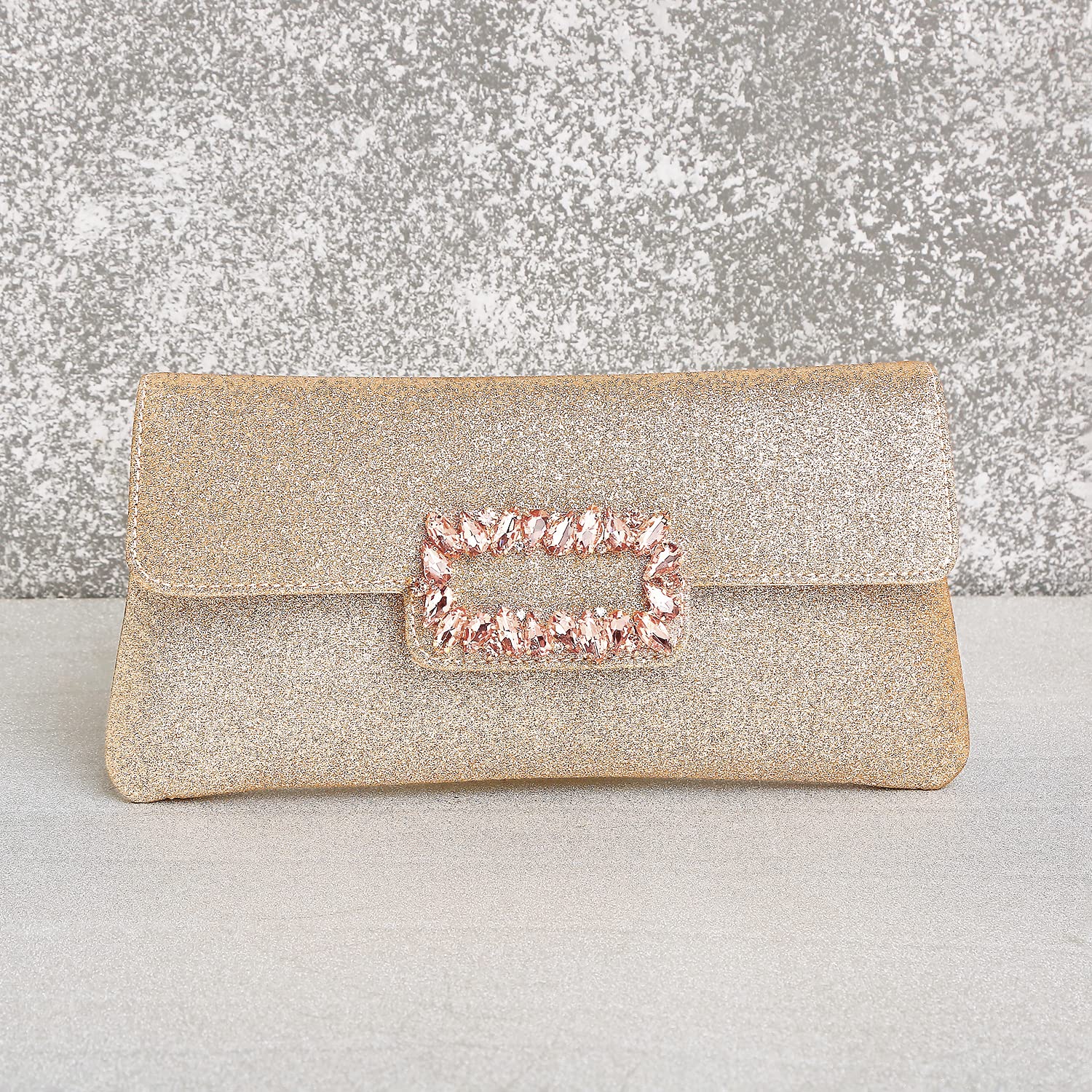 - KEY FEATURES : Clutch Dimension:- L - 9 Inch x W - 1.18 Inch x H - 4.52 Inch, Weight- 184 Grams | Type:- Envelope | Color:- Rose Gold | Size:- Regular | Material:- Fabric