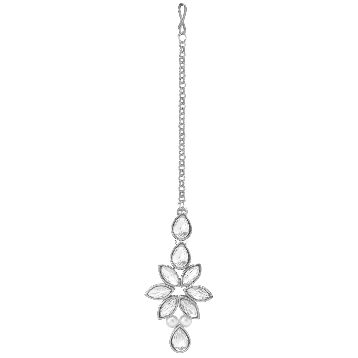 Peora Silver Plated Crystal & Beads Studded Necklace Earrings Maangtikka Set Ethnic Jewellery for Women