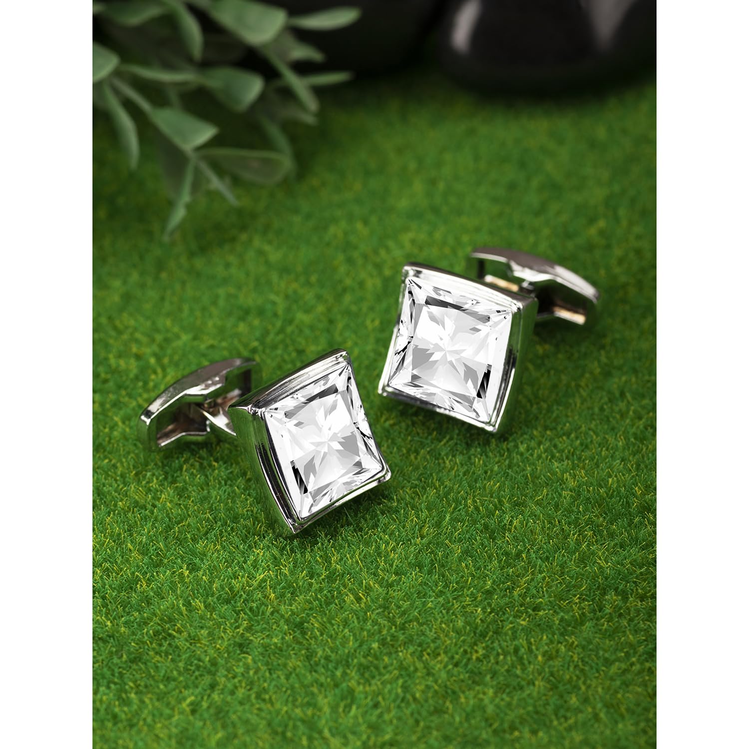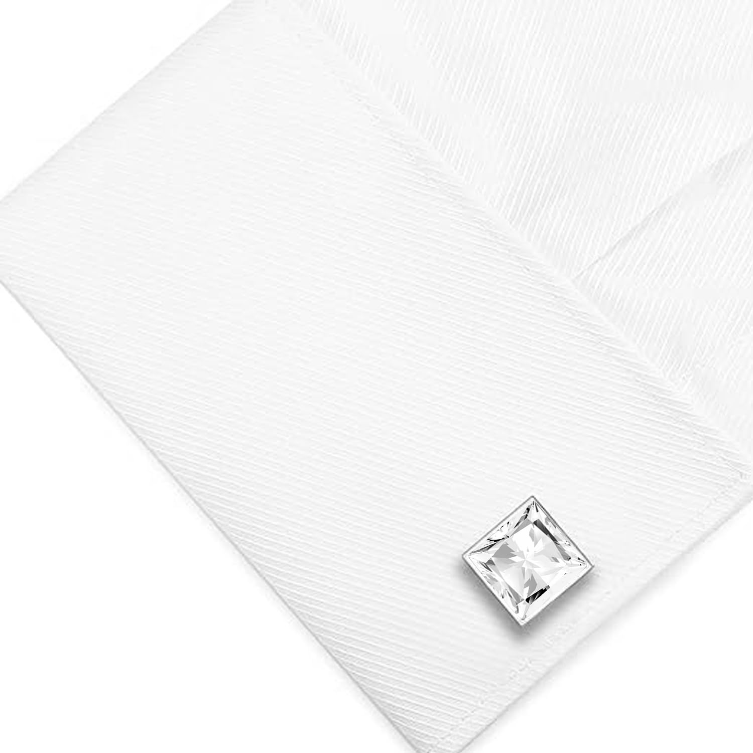 Peora Silver Plated White Crystal Cufflinks Wedding Business Accessories for Men Boys - Valentines Gift for Him