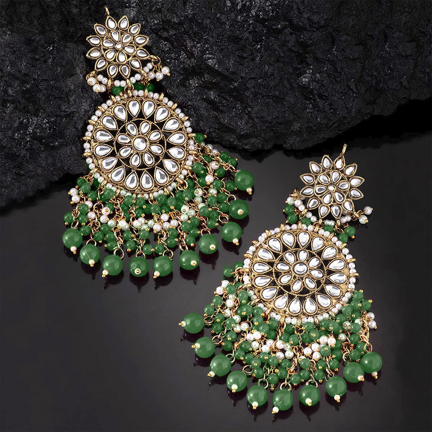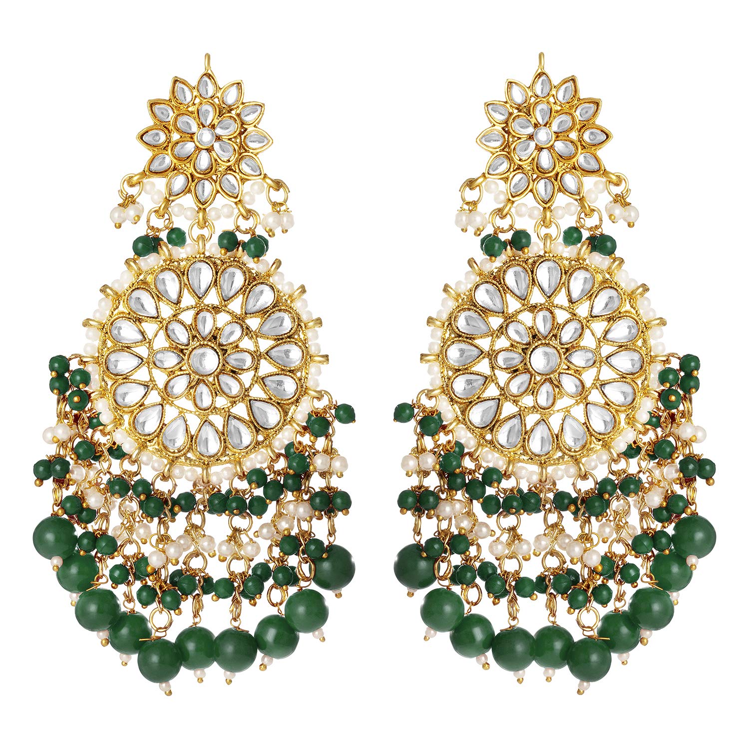 Peora Traditional Gold-Plated Brass & Kundan Dangle Earrings For Women & Girls, Green