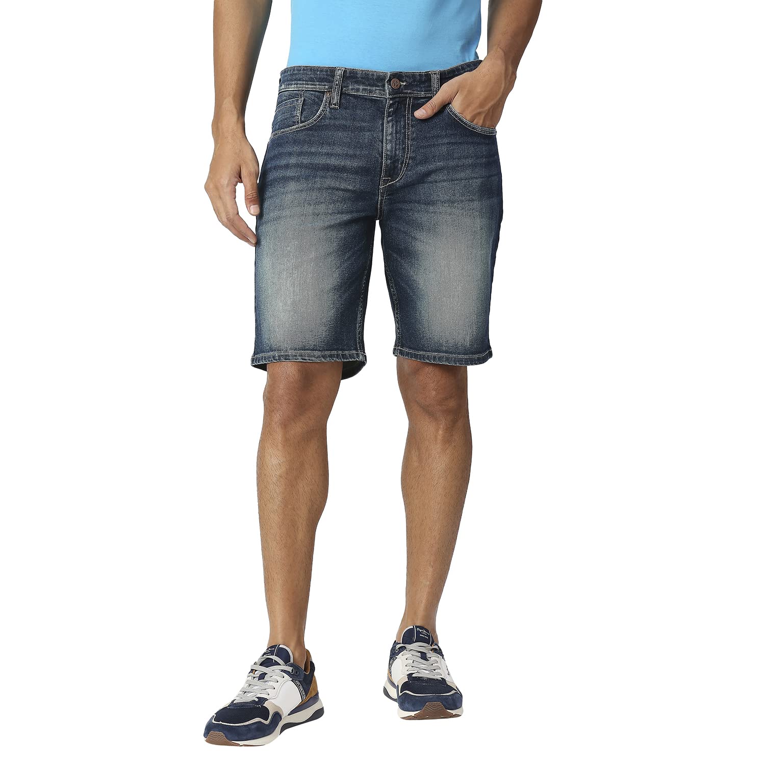 Details: 73 Fashion- Signature Brand Carrier - Stylized 5 Pocket 3/1 Twill- Dark Used Regular Fit-Mid Rise denim Shorts, Heavily Faded Denim With A Classic Clean Look