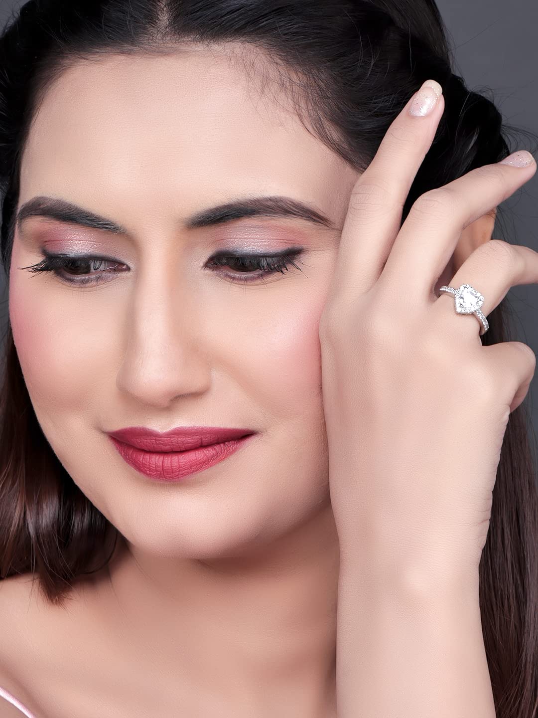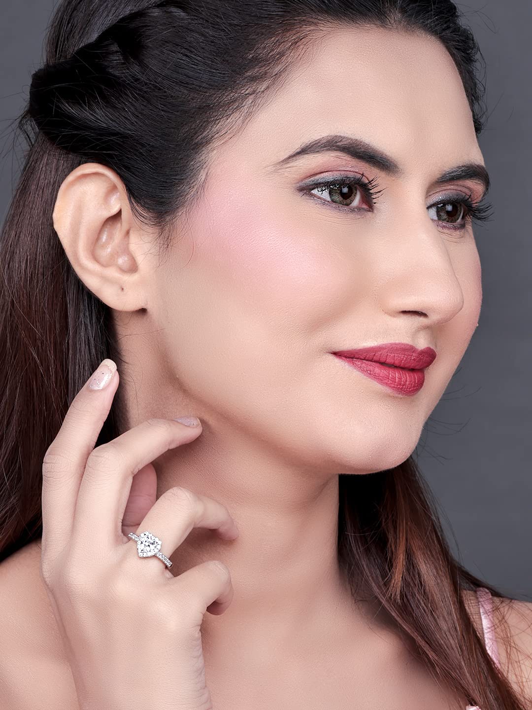 Pissara Adorable 925 Sterling Silver Valentine Day Gift Cubic Zirconia Finger Ring For Women And Girls|With Authenticity Certificate, 925 Stamp & 6 Months Warranty (Lr104651)