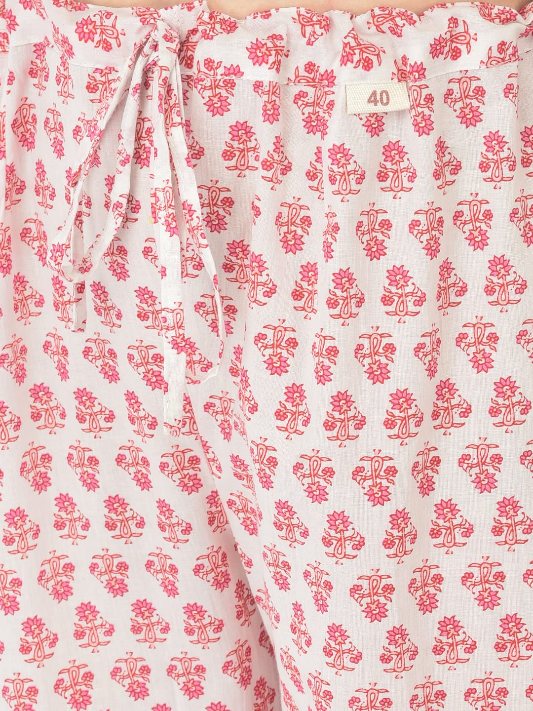 Pistaa's Women Cotton Anarkali Flair Suit Set (Pink, X-Large)