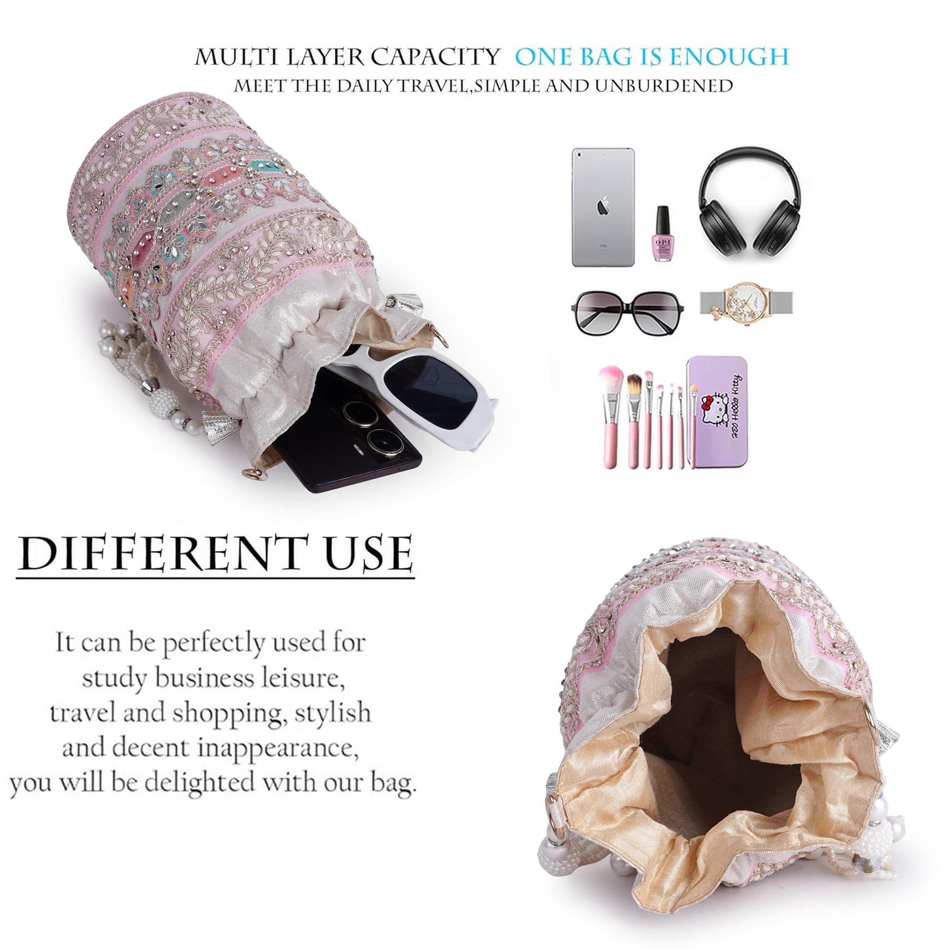 - Versatile and Functional: Not just a stunning accessory, this potli bag is designed to be versatile and functional, perfect for seamlessly carrying your essentials from daytime celebrations to evening galas.