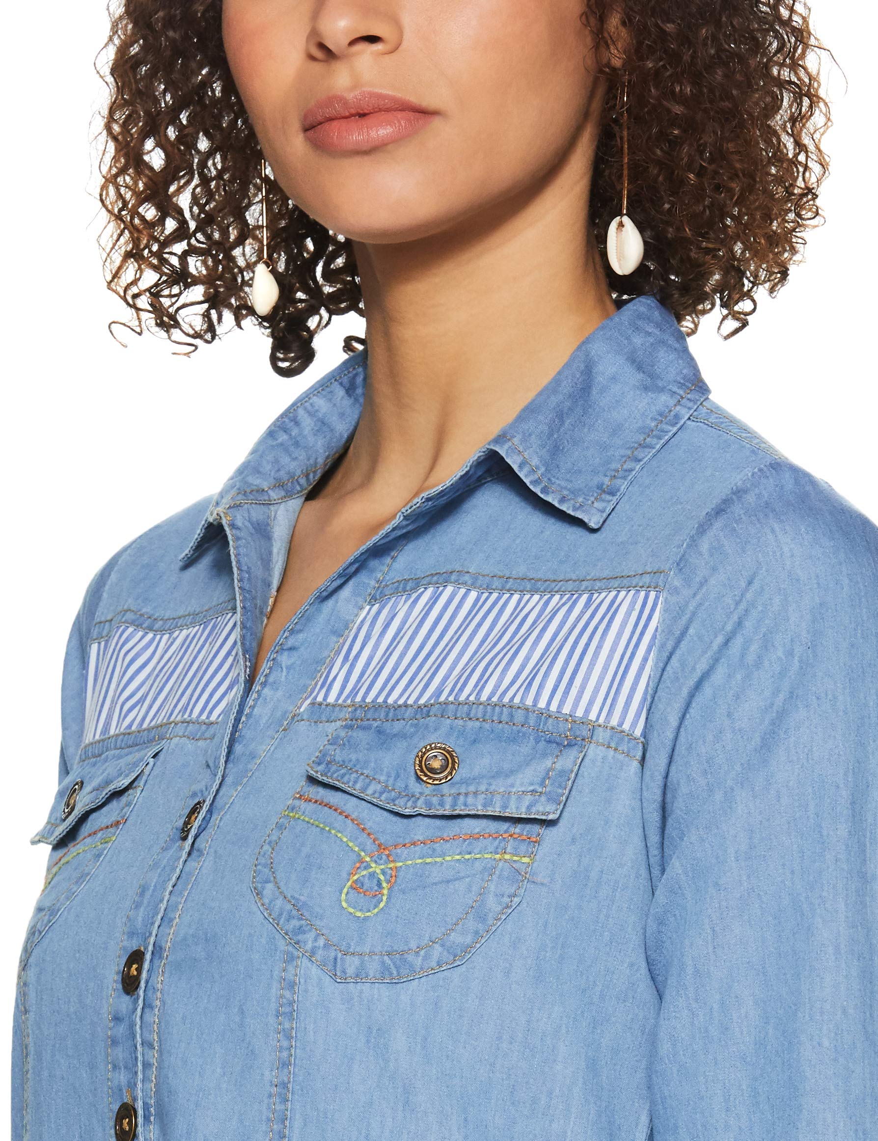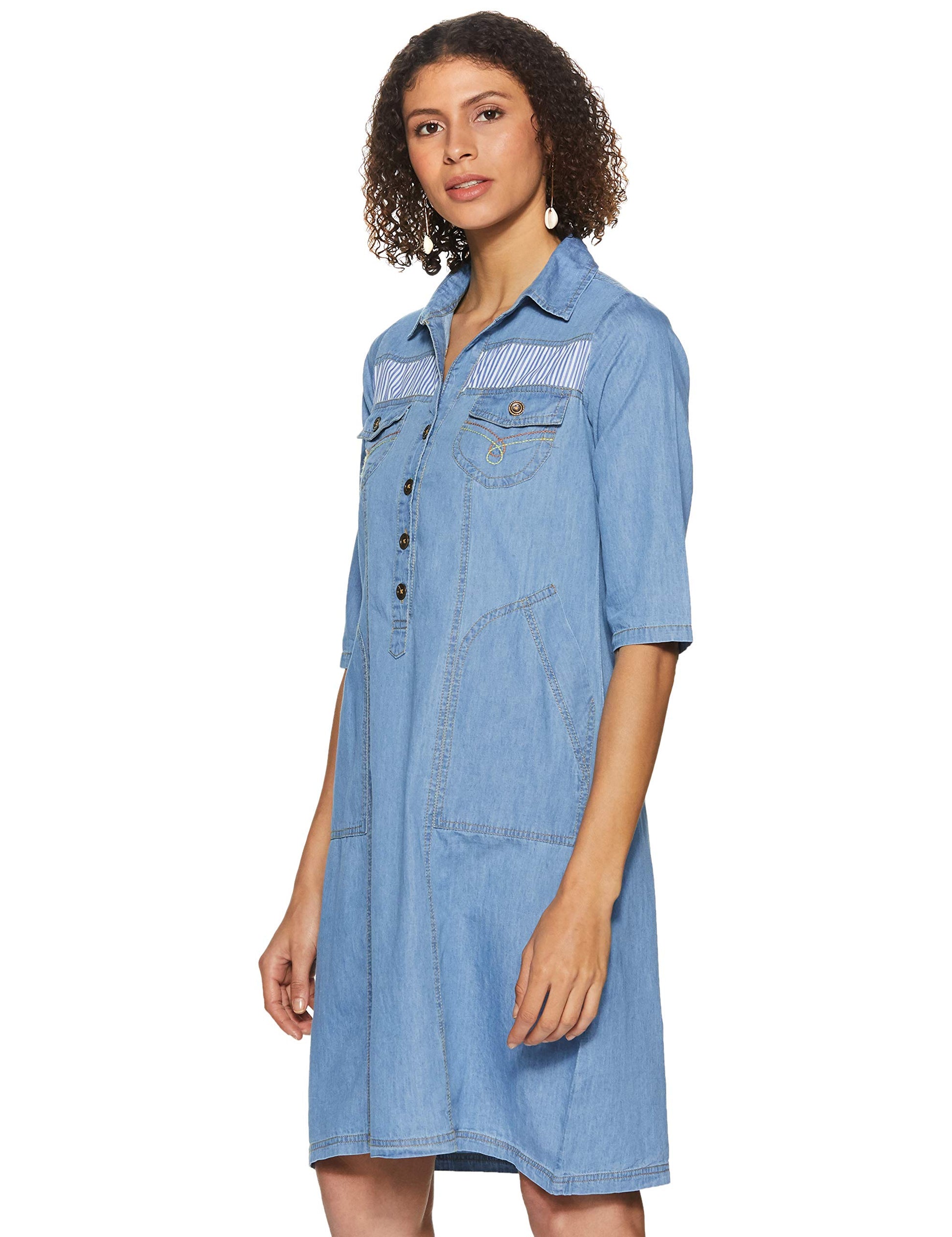 pluss Women's Georgette a-line Knee-Long Dress (LDR4729-BATAWASH_Blue_M)