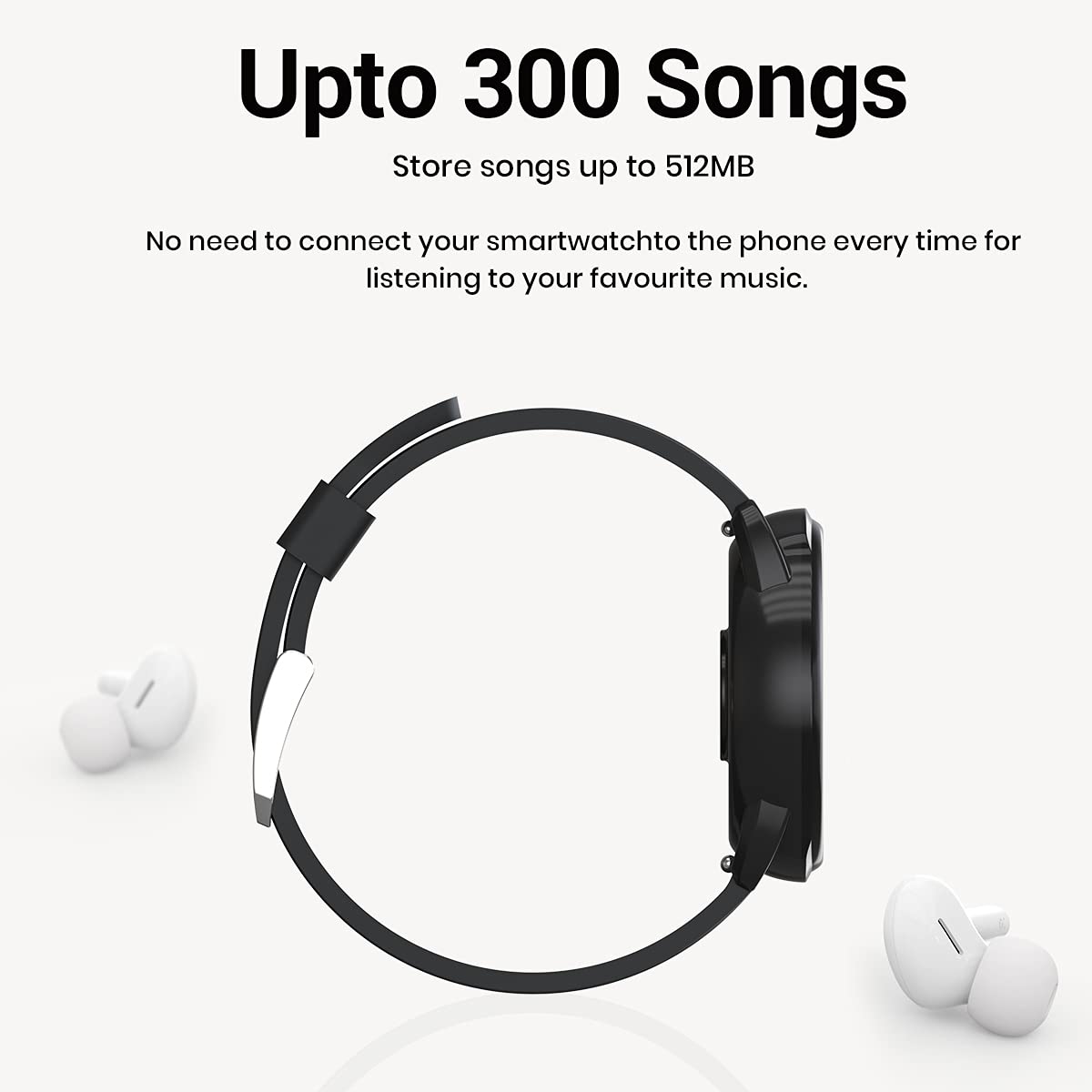 - [STORE UP TO 300 SONGS]: Kronos Beta Smartwatch has a 512 MB storage capacity that helps you store up to 300 songs inside it. Enjoy freedom from using your phone every time to listen to your favourite music