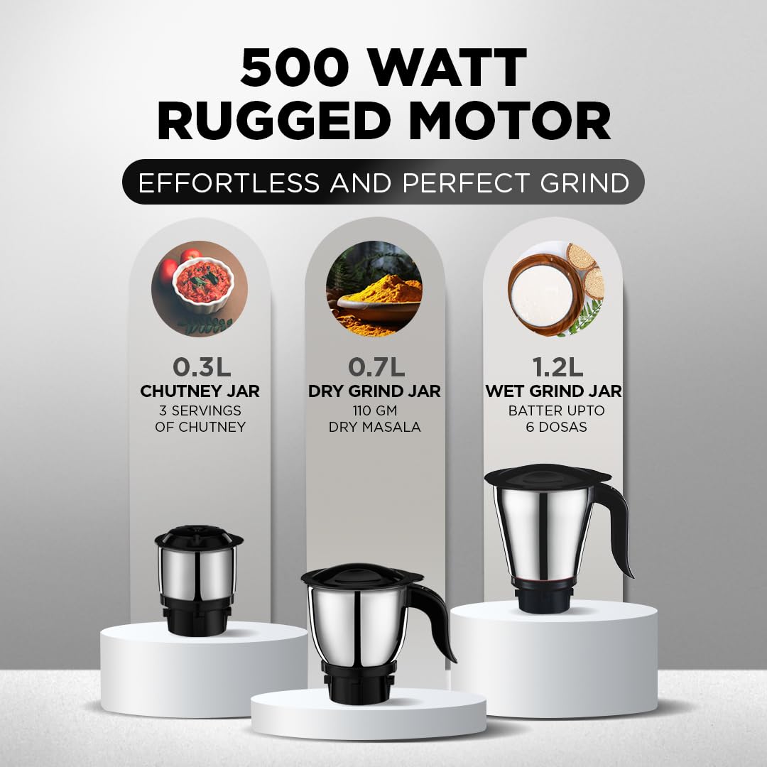 - The Powerful 500W motor gives efficient mixing and grinding to your ingredients and saves your expenditure on electricity simultaneously.