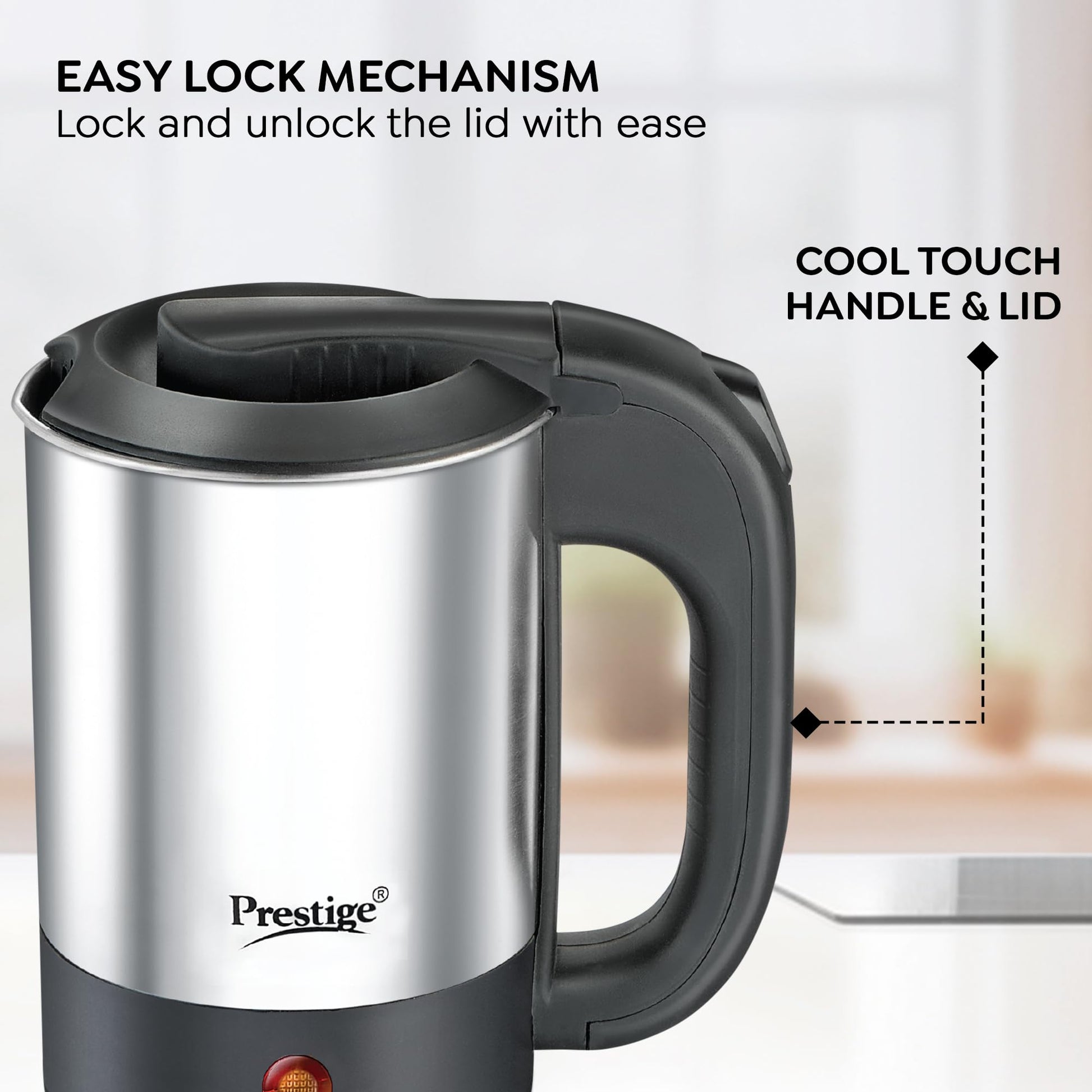 Prestige Stainless Steel Electic Travel Kettle 0.5 L V2 (0.5 L with Concealed Element), 700 Watts, Silver