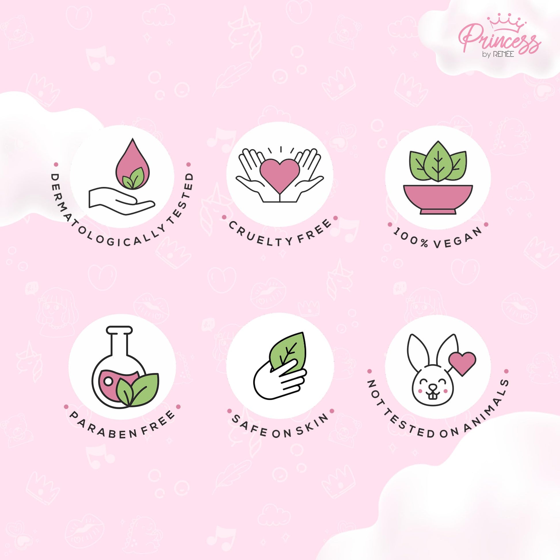 Princess by RENEE Royal Shine Lip Gloss Set, Soft, Shiny & Nourishing, Lightweight, Non-Sticky, Enriched with Strawberry Seed Oil, Jojoba & Avocado Oil, 5 Gentle Shades for Young Lips, 1.2Ml Each