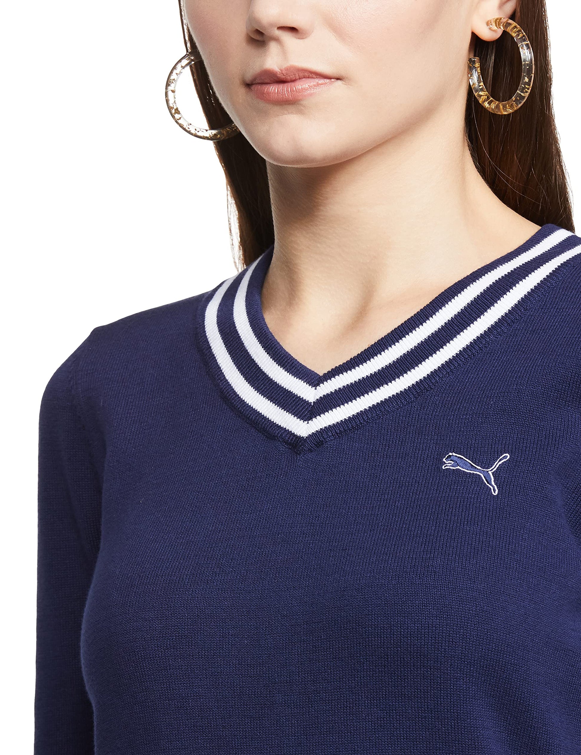 Puma Women's' Cotton V-Neck Sweater (56835502_Medieval White-Vapor Blue_S)