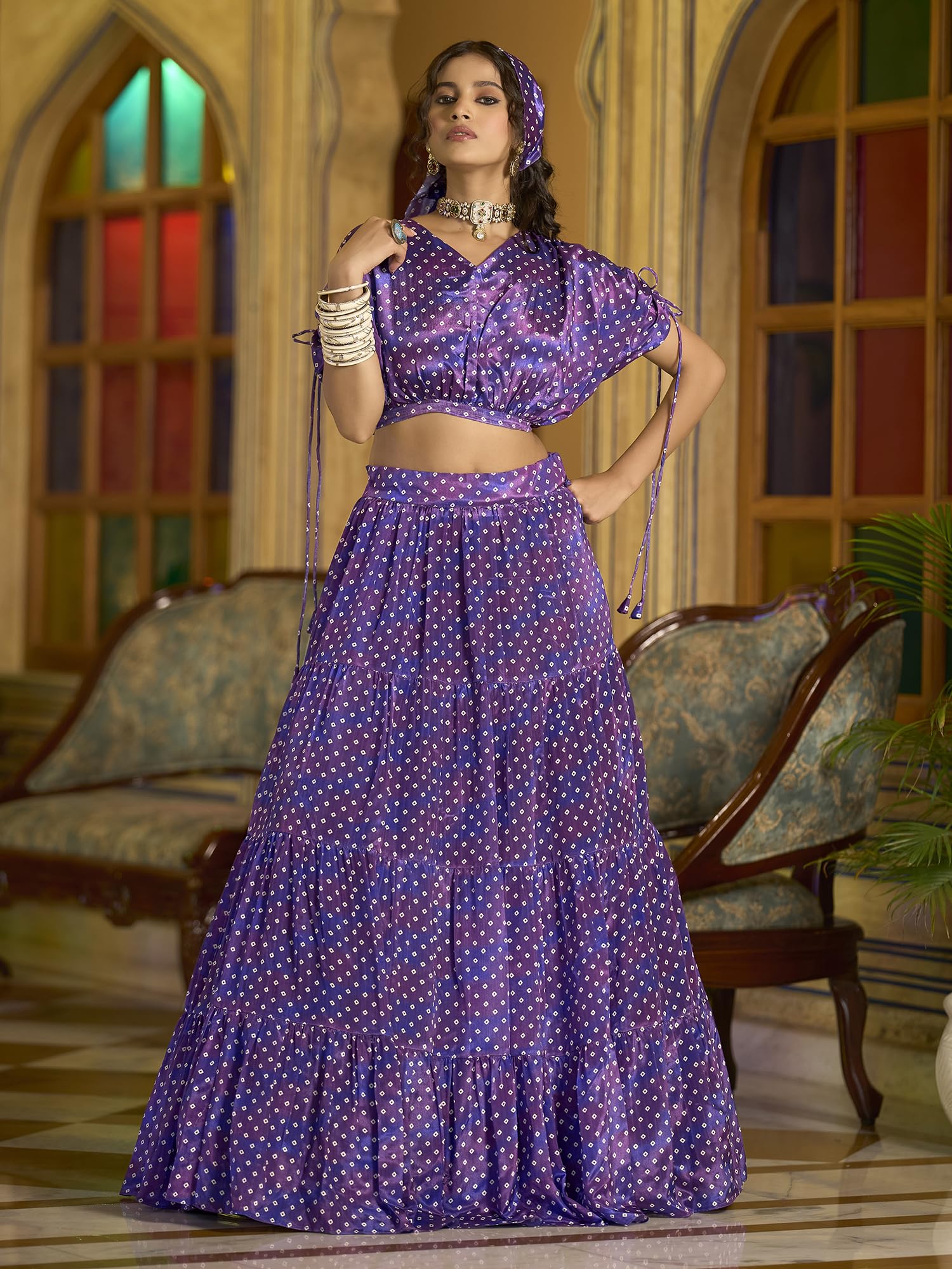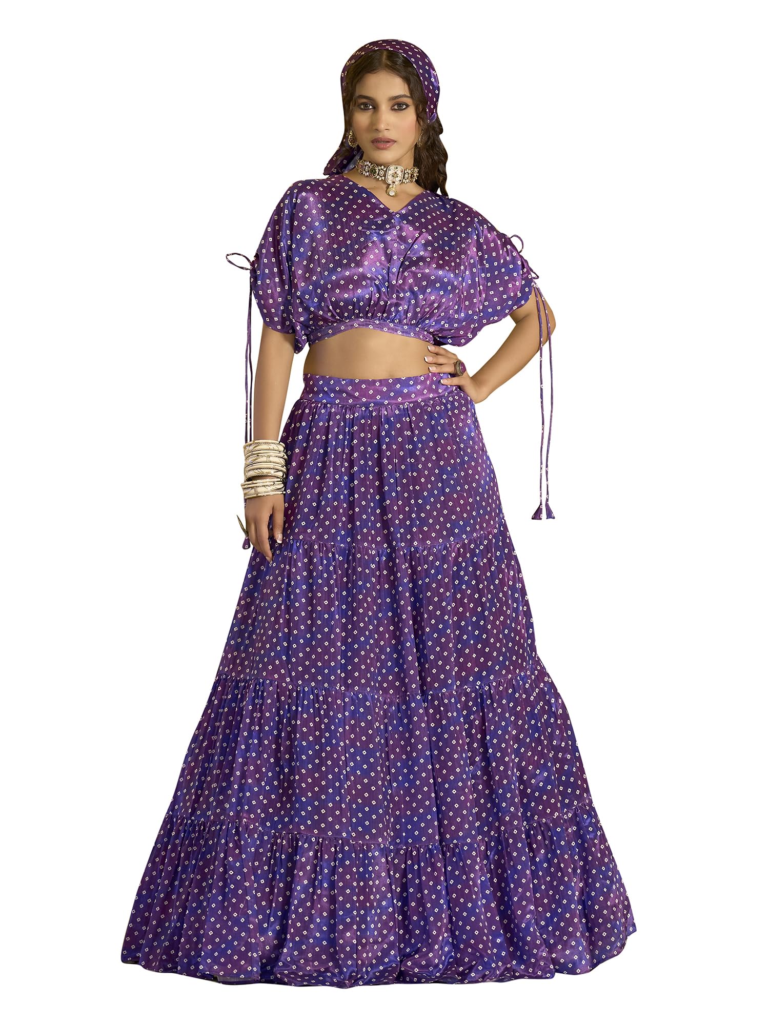 PURVAJA Women's Chinon/Art Silk Semi-Stitched Lehenga choli (Vivi-Purple_M)