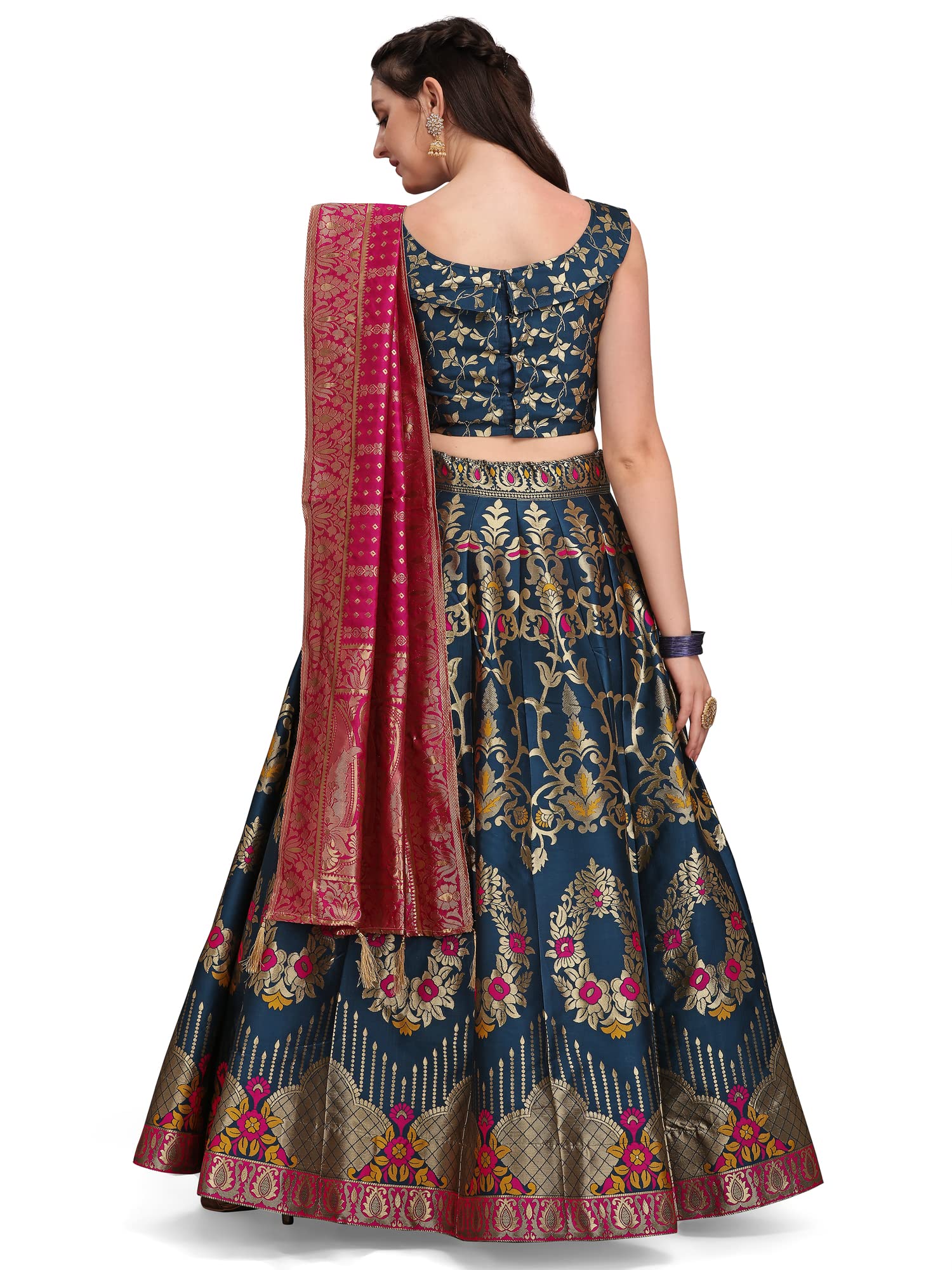 PURVAJA Women's Jacquard Semi-Stitched Lehenga choli (Amayra-Rama_Rama_Free Size)