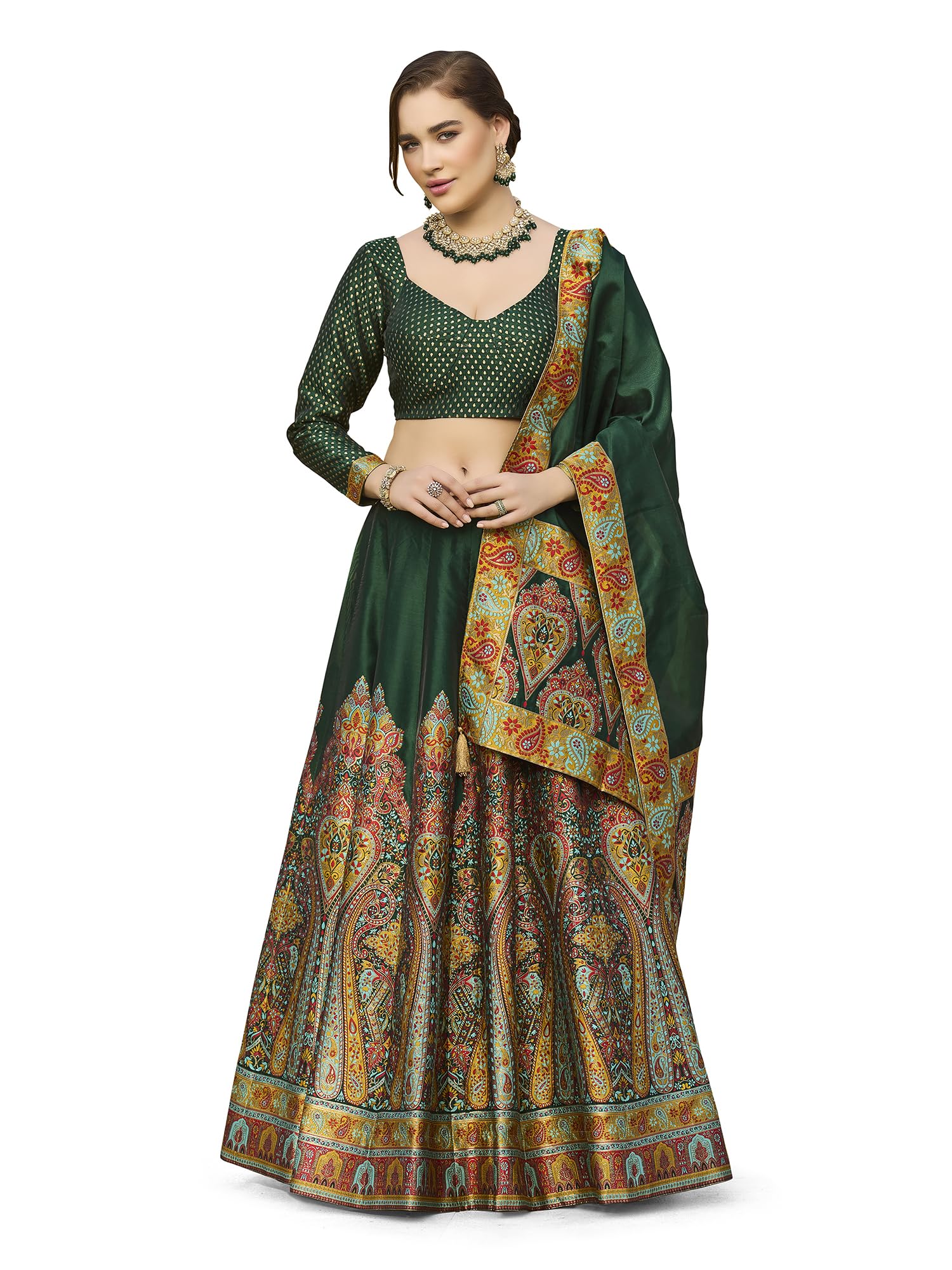 PURVAJA Women's Jacquard Semi-Stitched Lehenga choli (Nisva-D-Green_Free Size)