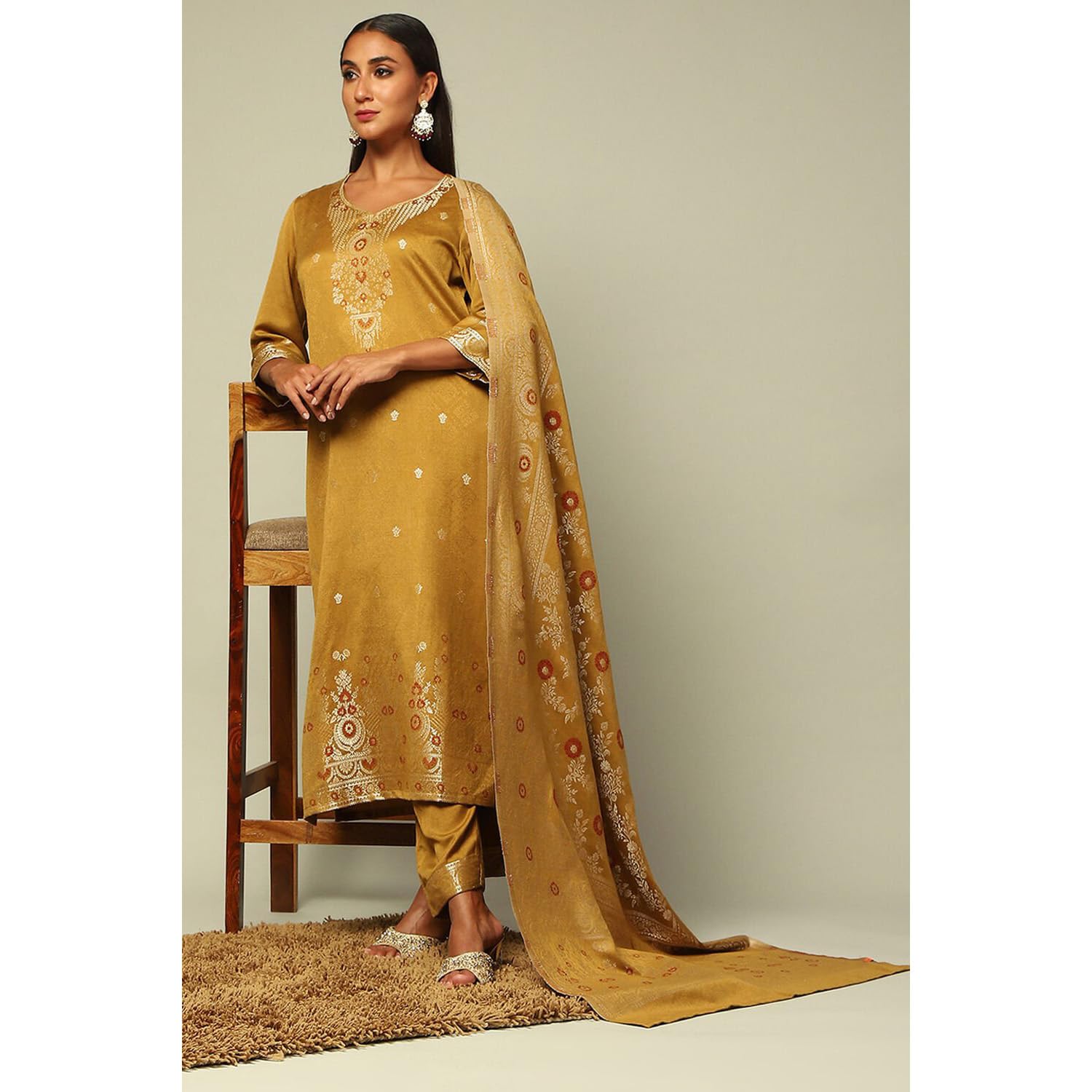 Rangriti Women's Acrylic Kurta Set (WNTRWR19626AW24MUSTYEL_Mustard