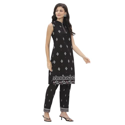 Rangriti Women's Rayon Blend Kurta Set (CRDST19240SS25BLK_Black