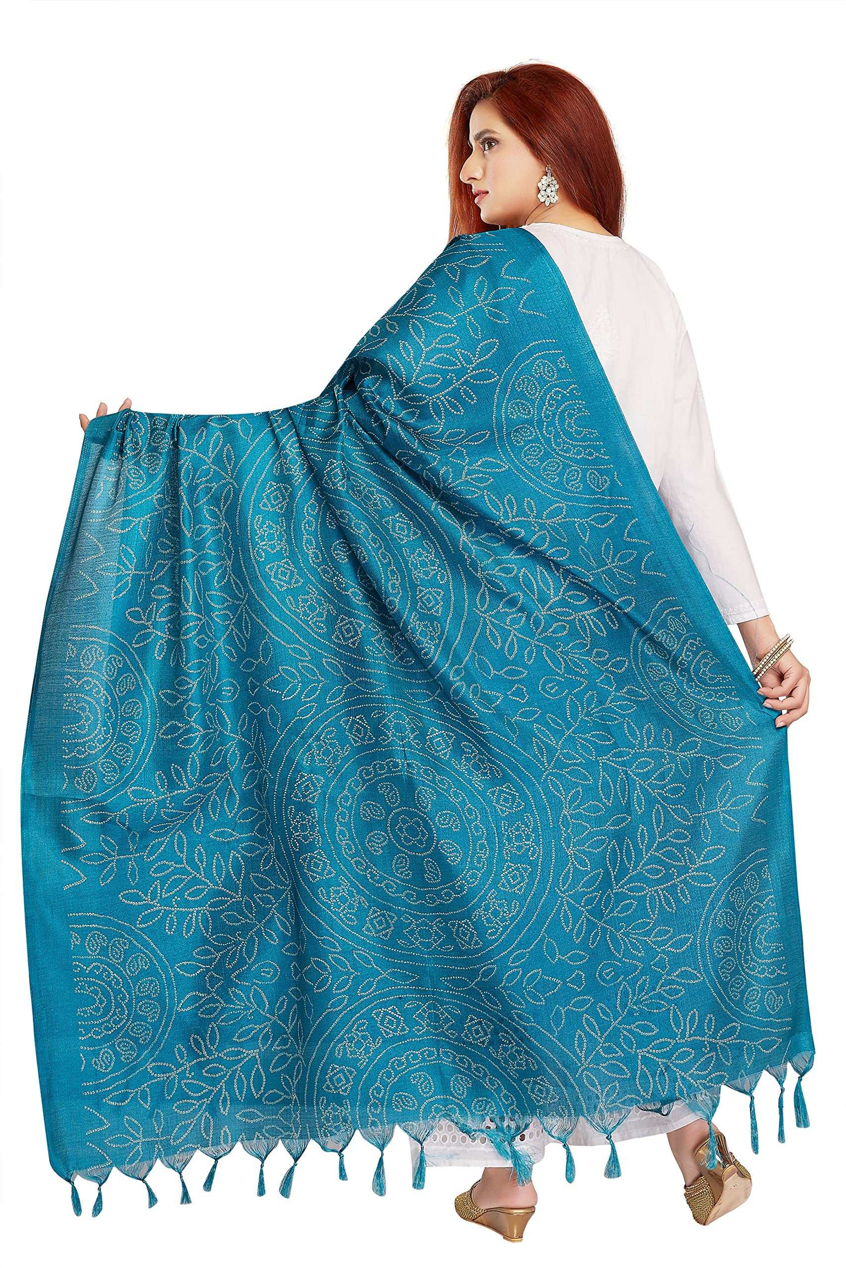 RANI SAAHIBA Women's Art Silk Printed Dupatta (SKRDD2220_Turquoise)