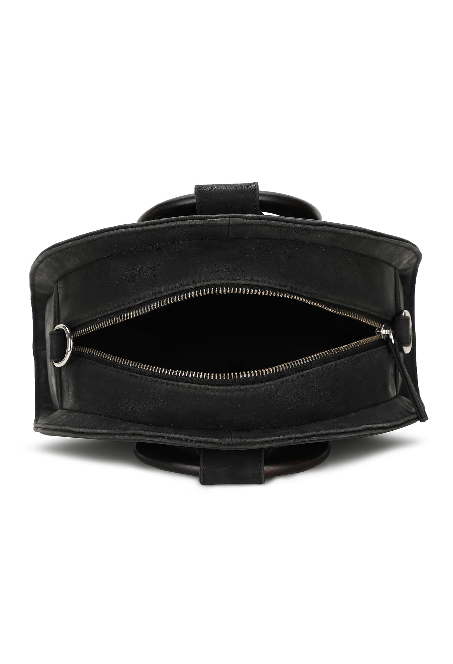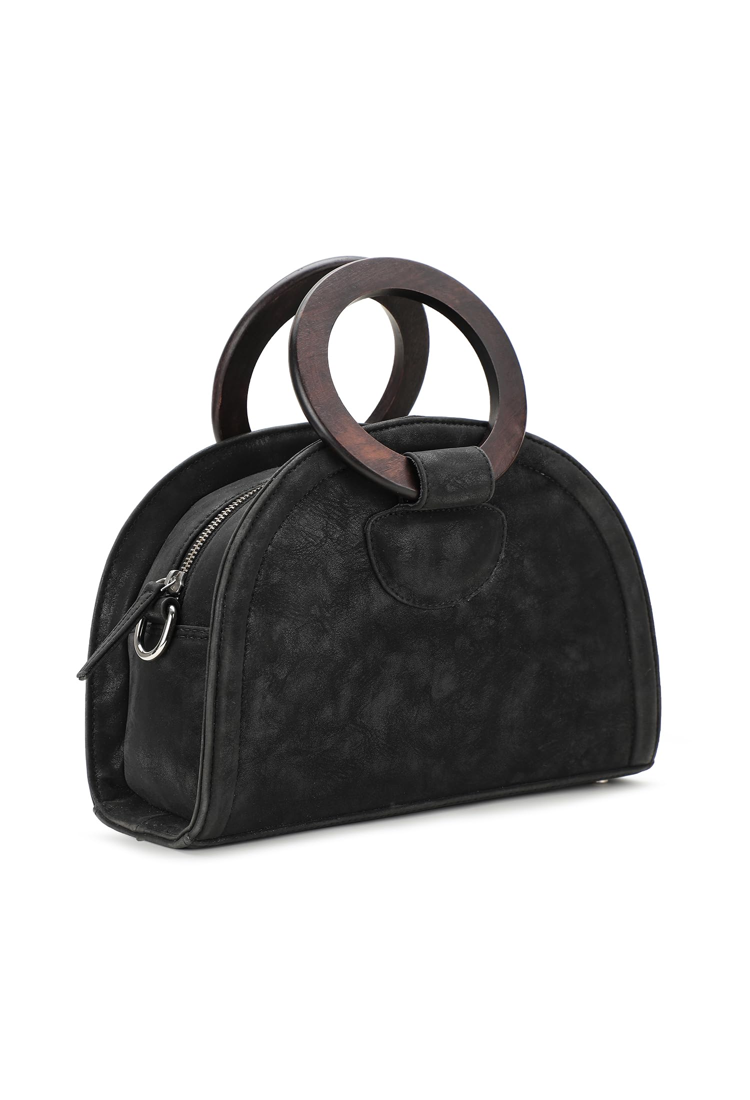 RASHKI CENDRES - Womens Vegan Leather Handbag | Round Wooden Handle| Detachable and adjustable Shoulder Strap | Party Bag| Zipper closure (Black)
