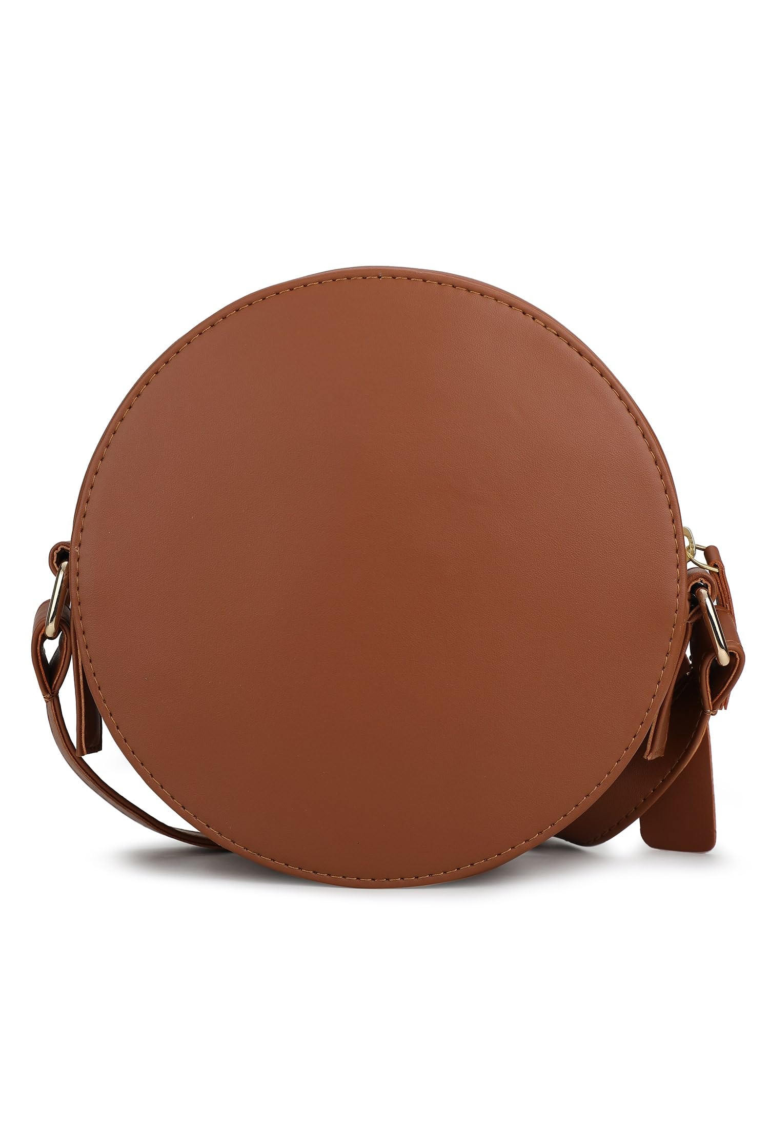 RASHKI TERRA - Womens Vegan Leather Sling Bag| Spacious Compartment| Perfect for Daily Use| Travel | Party| Round Bag | Zipper closure (TAN)